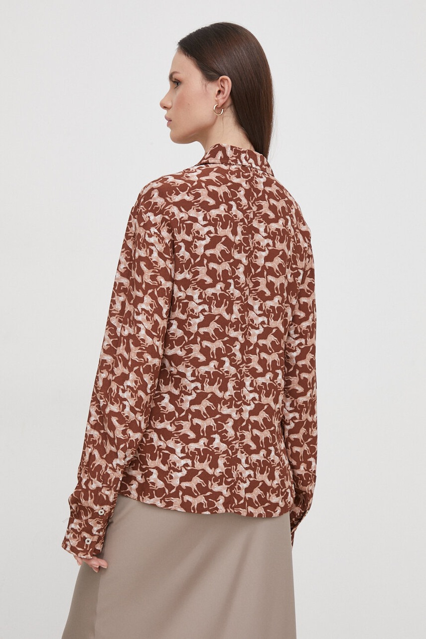 United Colors of Benetton camasa femei, culoarea maro, cu guler clasic, regular