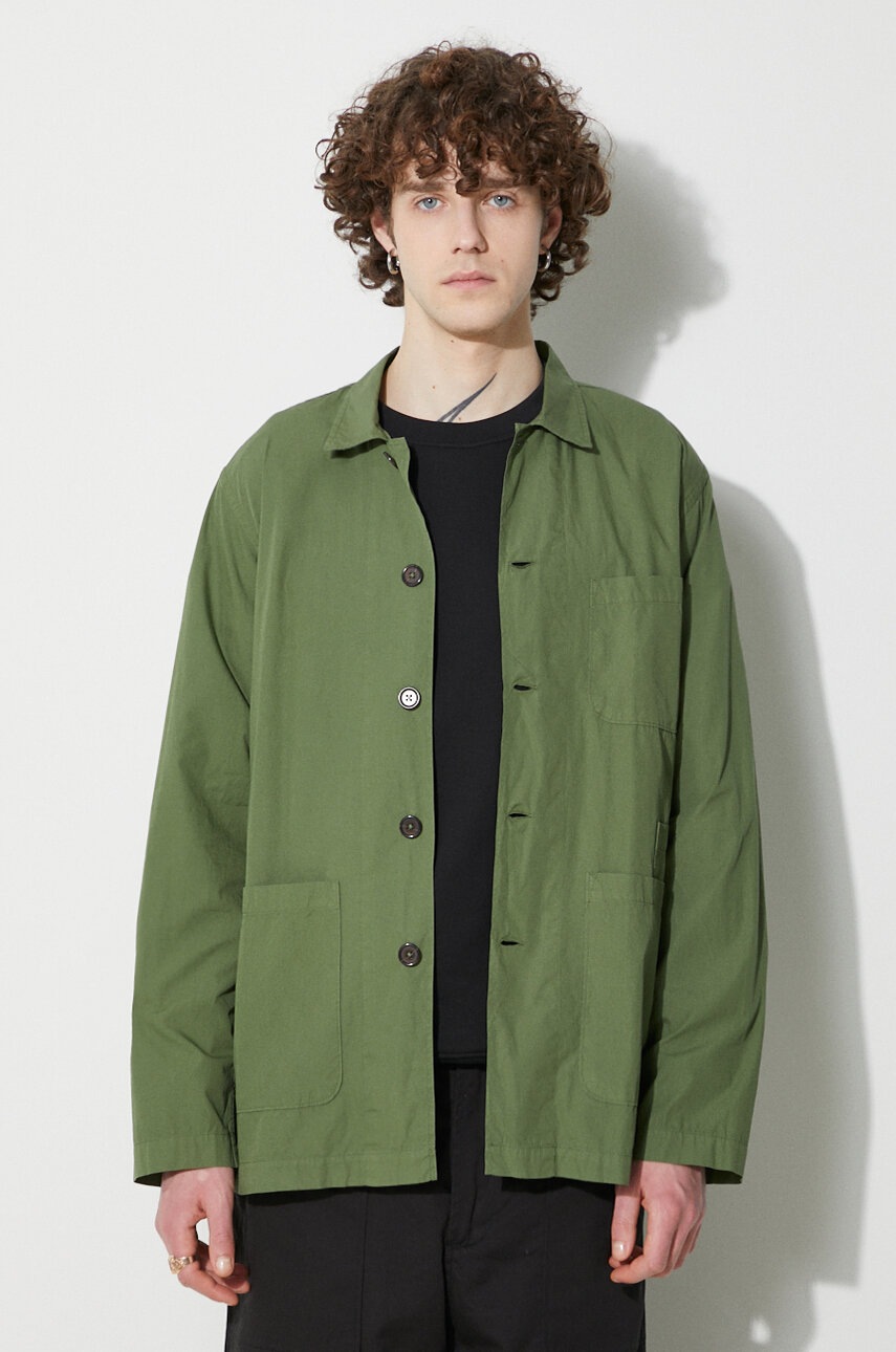 Universal Works Bakers Overshirt Camasa barbati verde din bumbac organic, guler clasic, croiala lejera, marime L