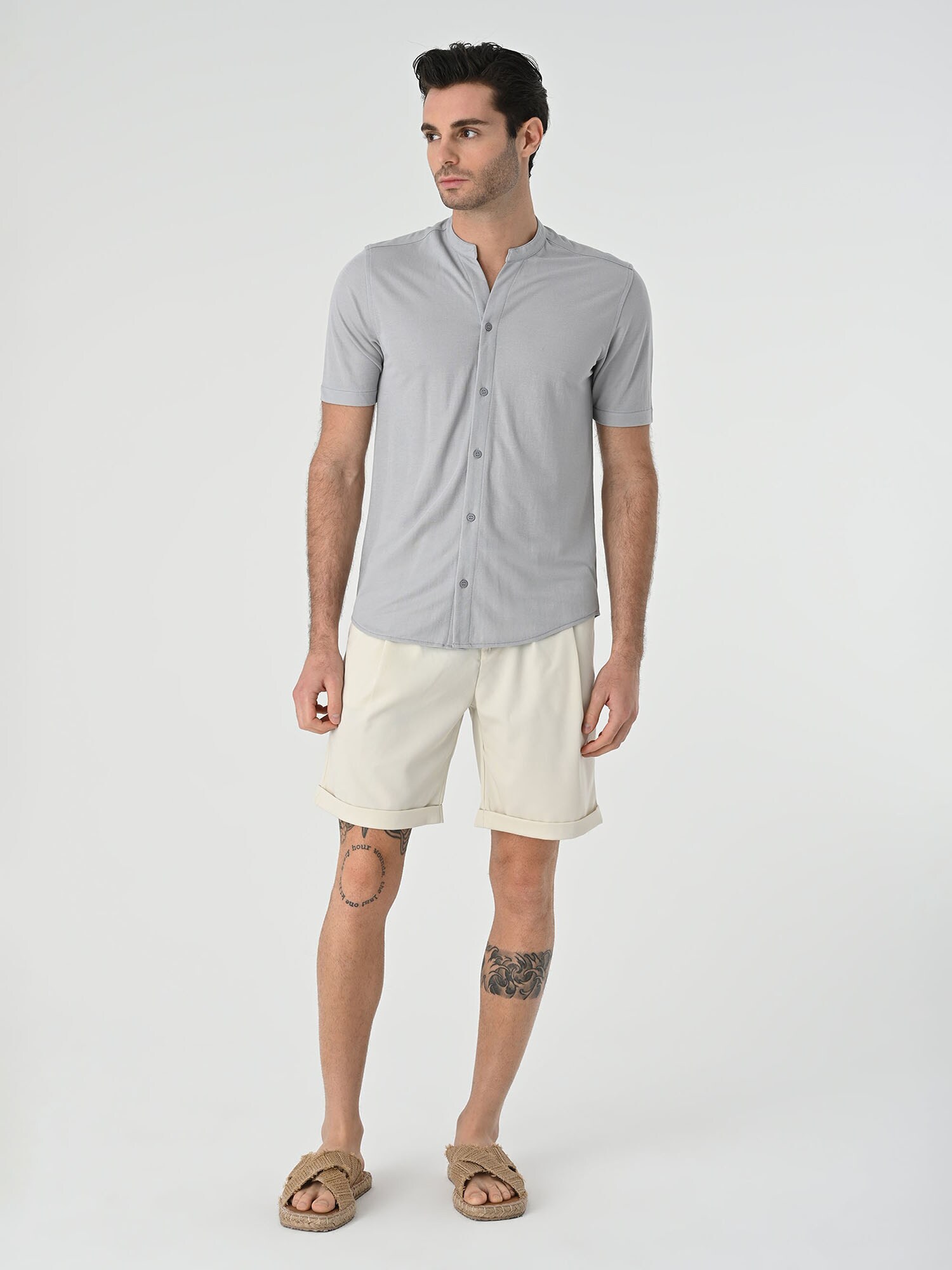 Design: Guler tunică; Tip de închidere: Închidere cu nasturi; Material: Bumbac; Imprimeu: Monocrom; Guler de cămașă: Guler tunică; Detalii: Material delicat, Material structurat; Tipul croiului: Slim fit; Lungime mâneci: Mâneci medii