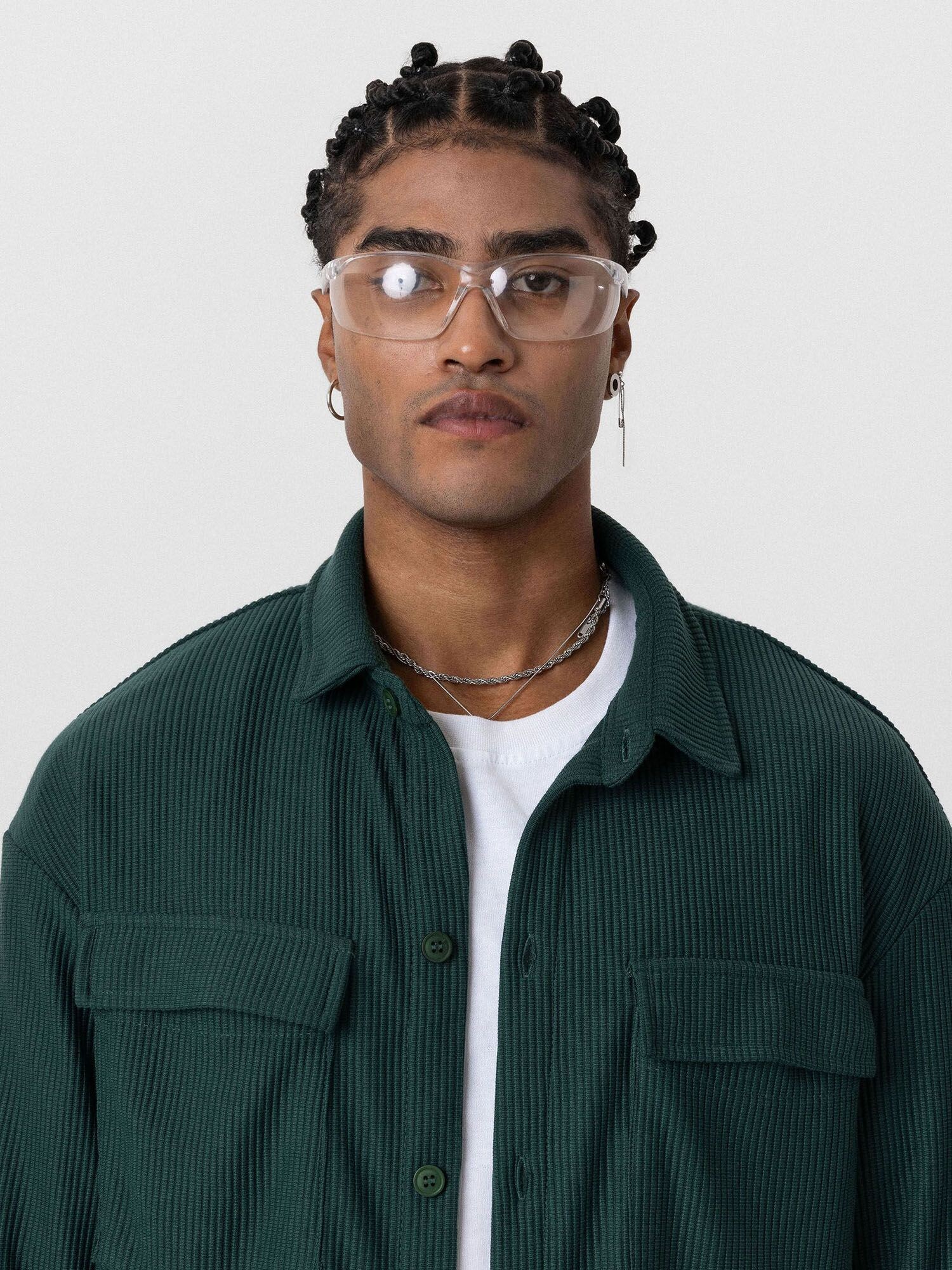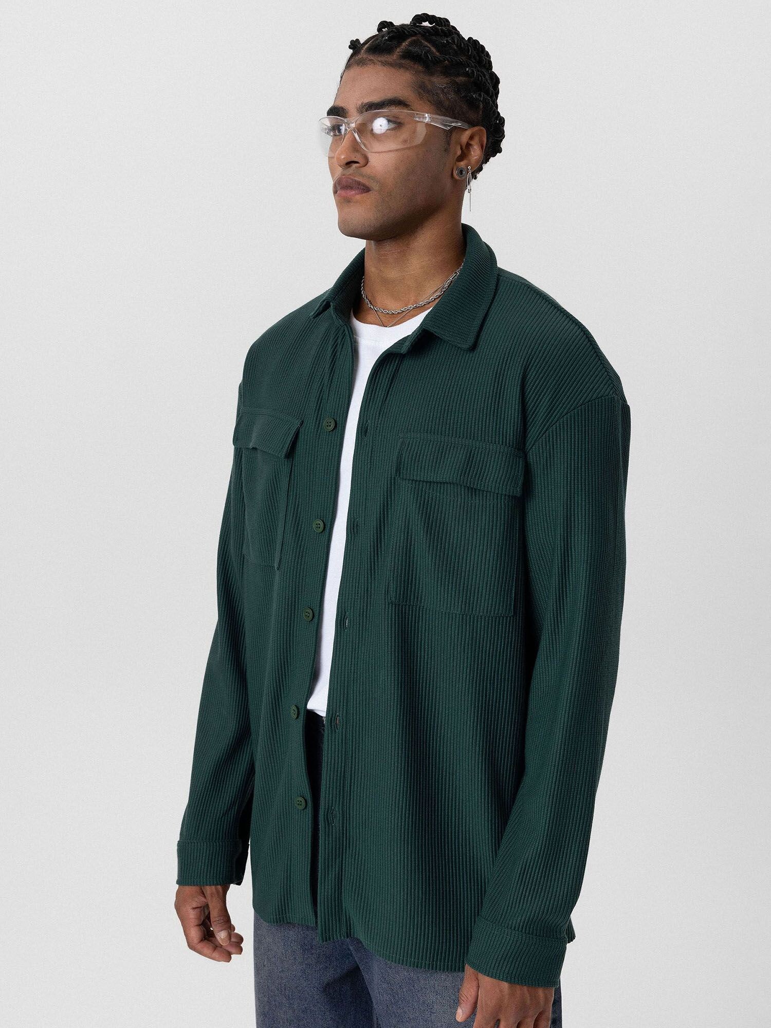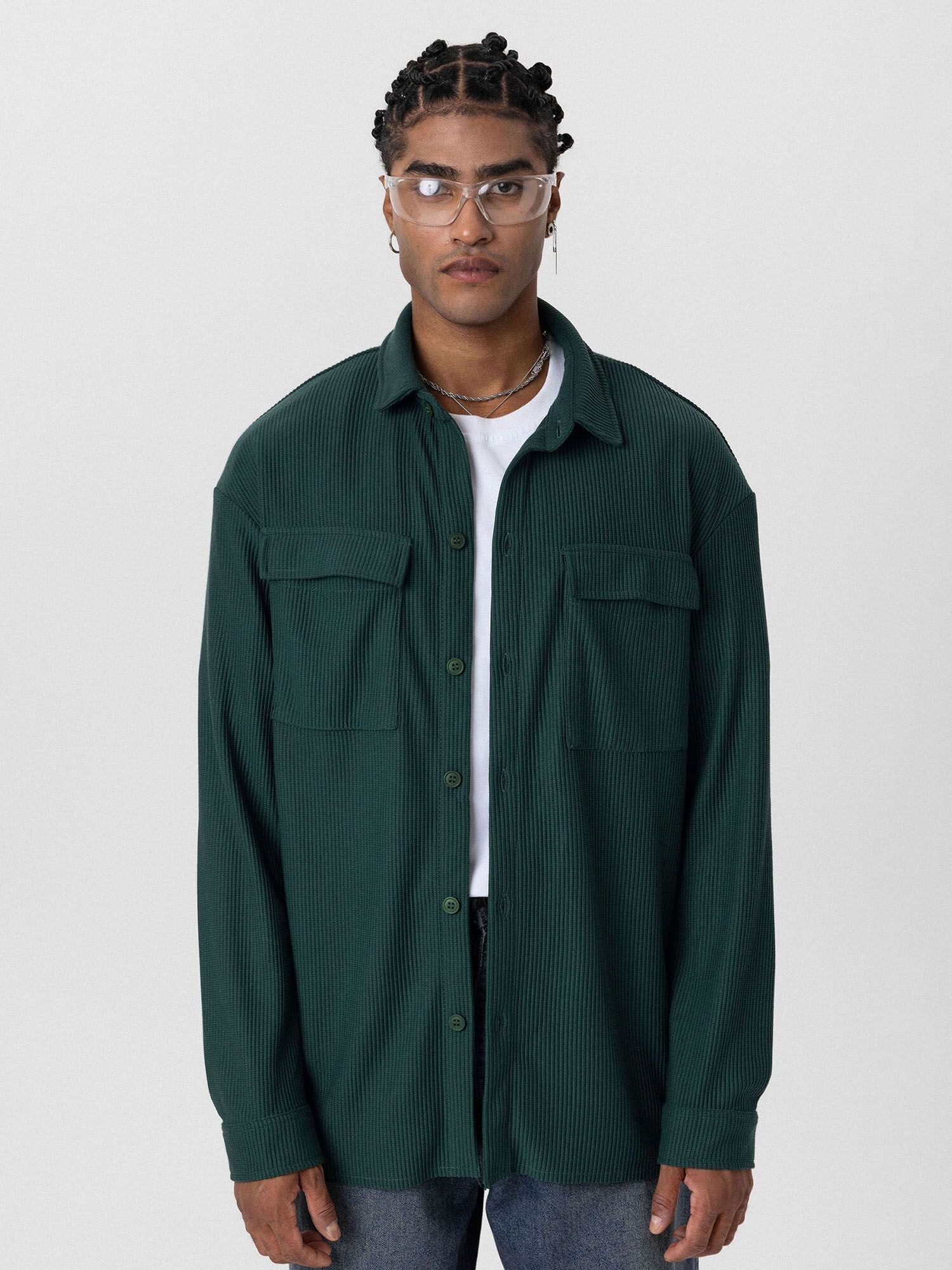 Design: Tiv/ margine tighelită, Șir de nasturi, Supradimensionat, Buzunar la piept; Tip de închidere: Închidere cu nasturi; Material: Catifea reiată; Imprimeu: Monocrom; Guler de cămașă: Guler Kent; Detalii: Cusături ton în ton, Material structurat; Tipul croiului: Comfort Fit; Lungime mâneci: Mâncecă lungă