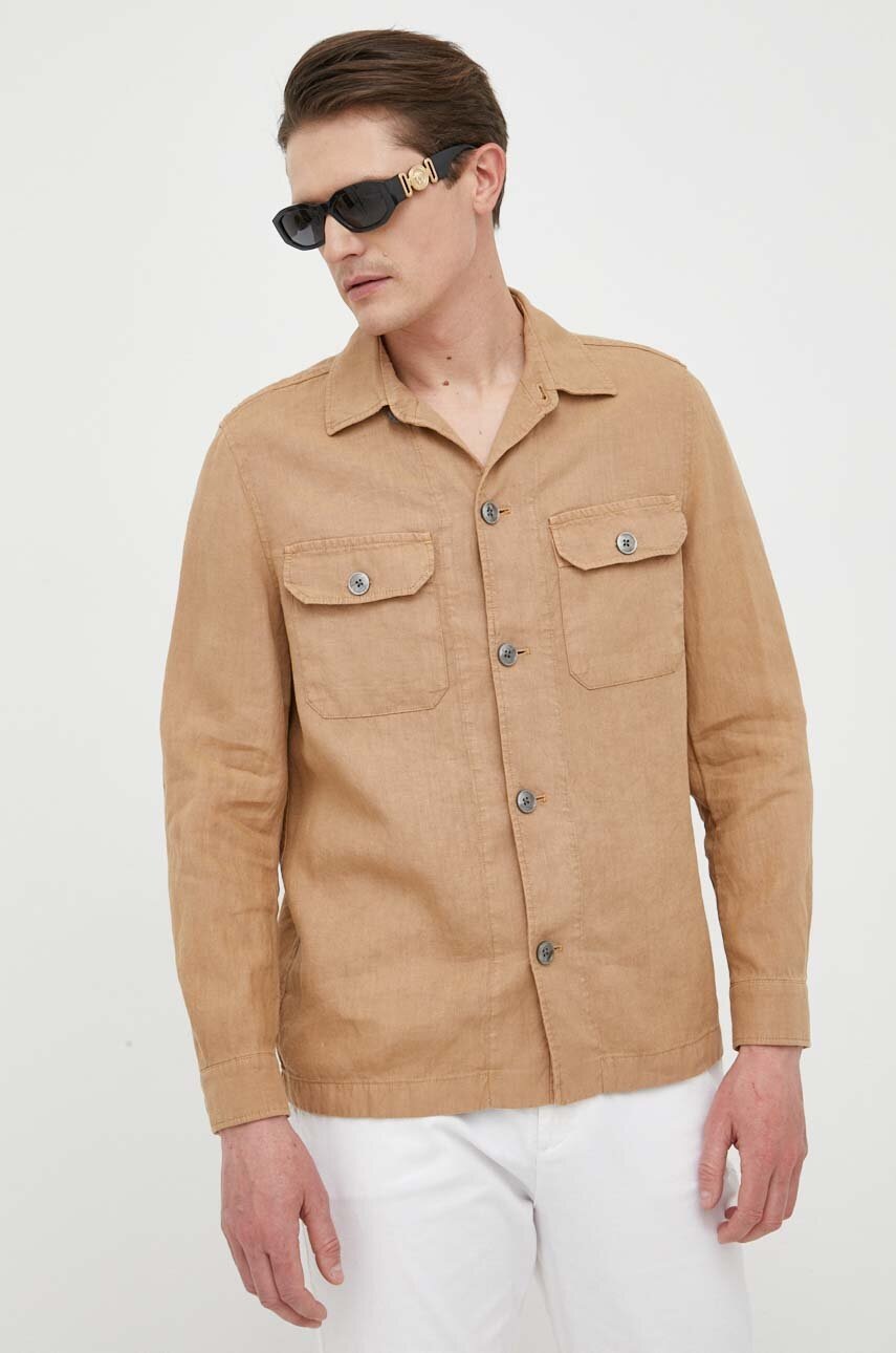 BOSS camasa de in culoarea bej, cu guler clasic, regular
