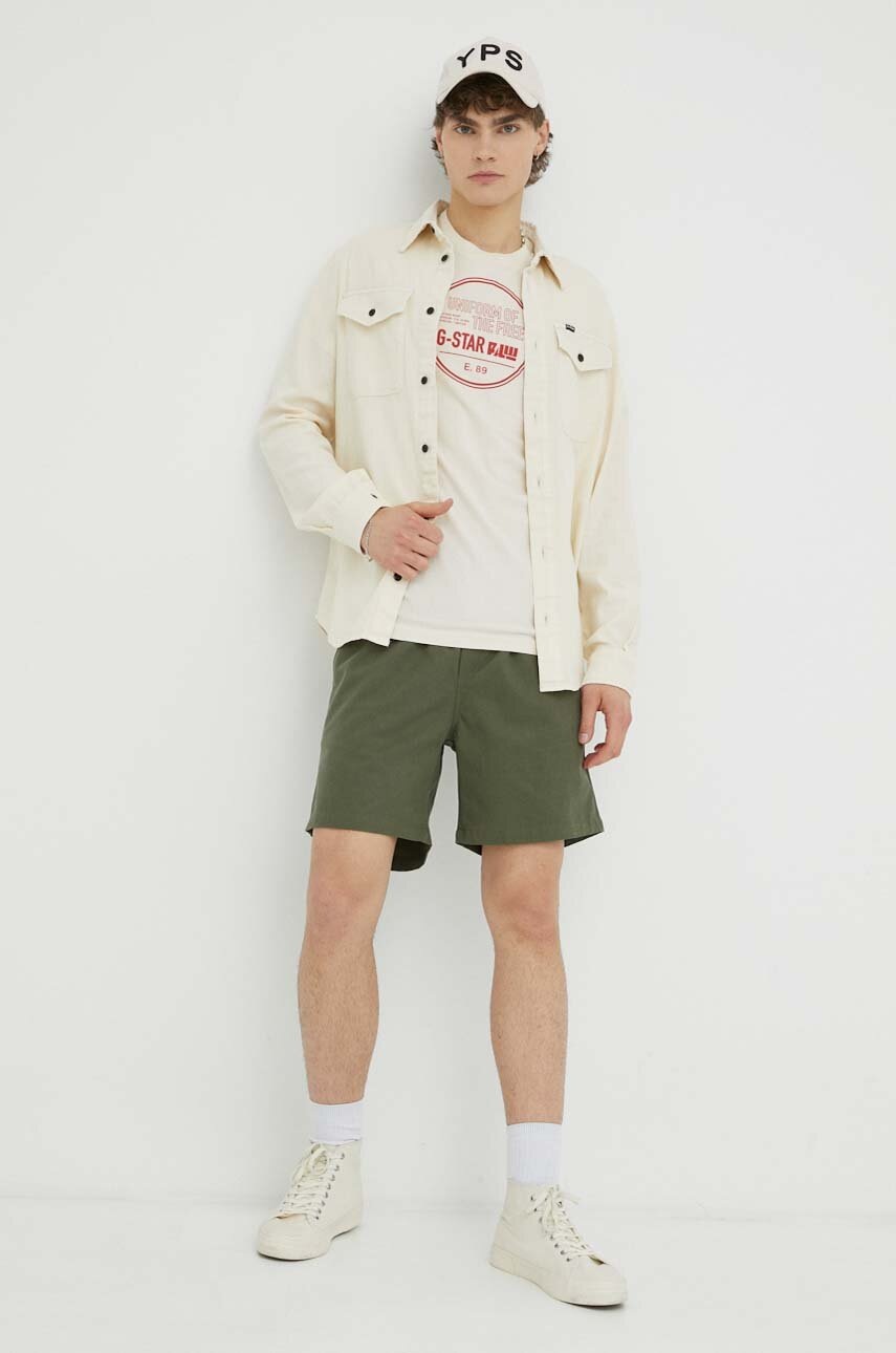G-Star cămașă din bumbac bărbați, culoarea bej, cu guler clasic, slim