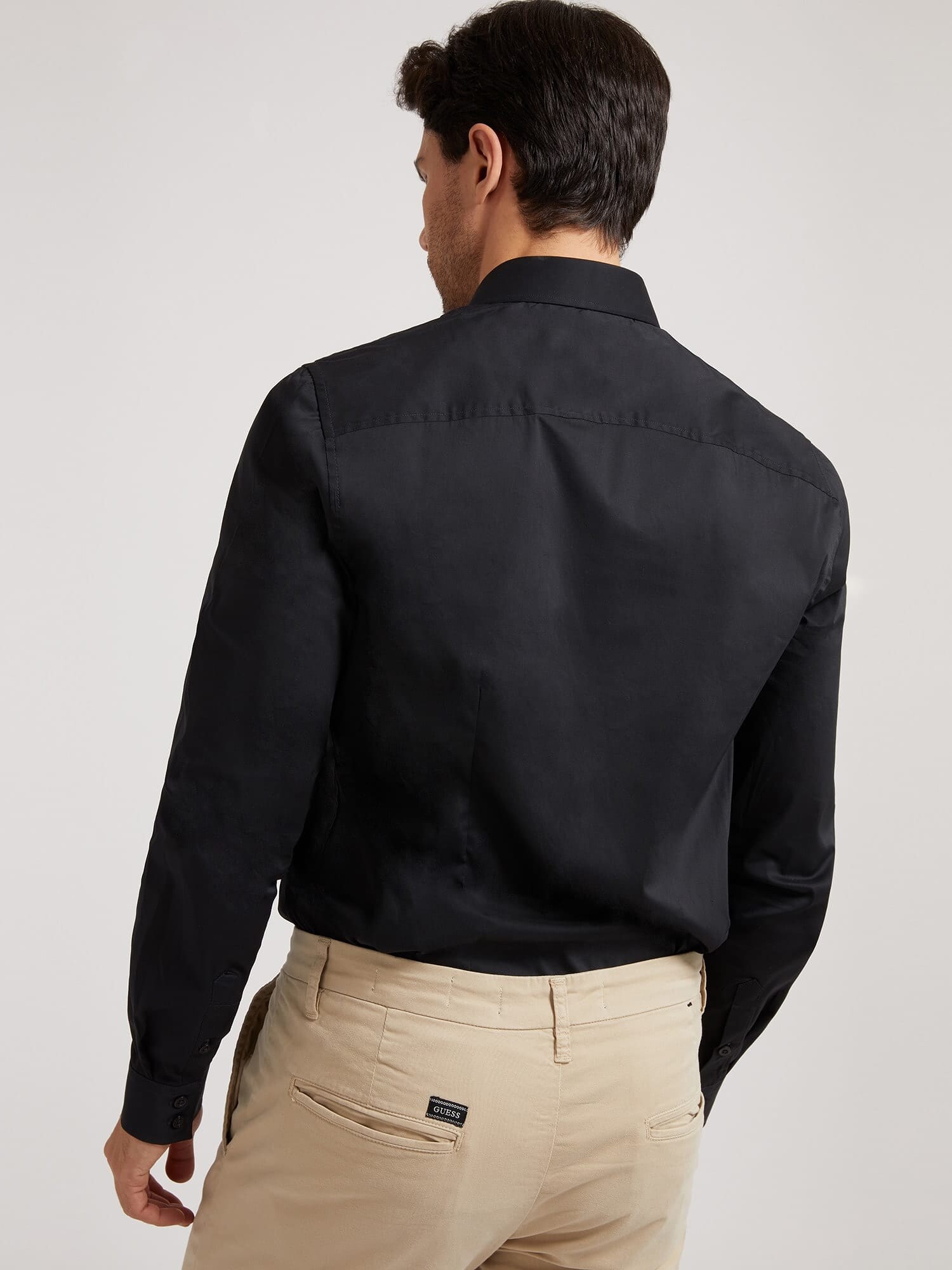GUESS Cămașă din bumbac, slim fit, mânecă lungă, guler Kent, culoare neagră