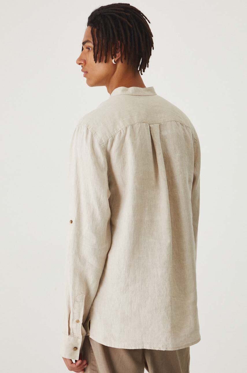 Medicine camasa de in barbati, culoarea bej, cu guler stand-up, regular