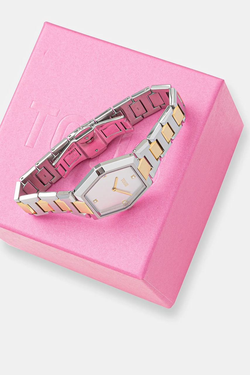 Ceas din colecția Tous. Model cu cadran poligonal și Brățară tip bujuterie.