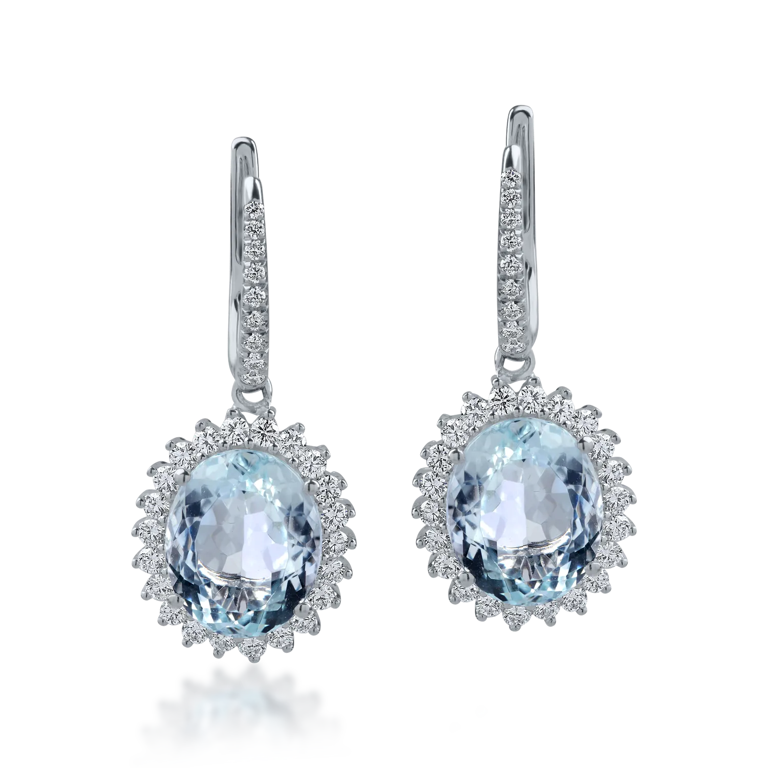 Cercei din aur alb cu acvamarine ovale de 7.62ct si diamante de 0.94ct