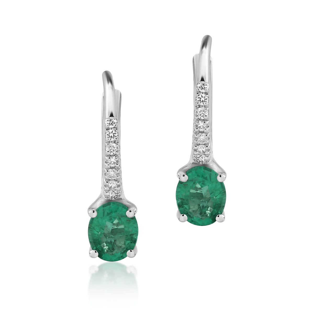 Cercei din aur alb cu smaralde ovale de 0.52ct si diamante de 0.06ct