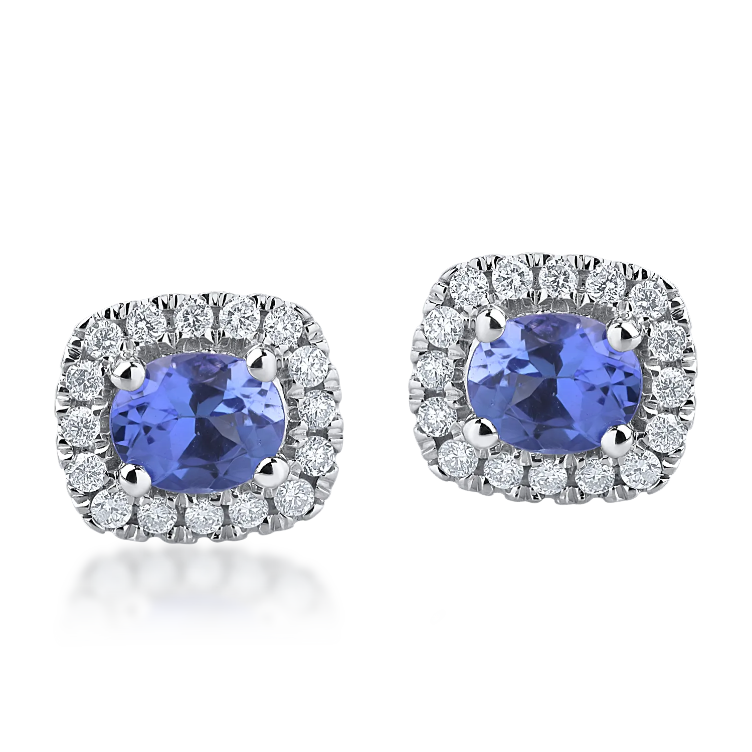 Cercei din aur alb cu tanzanite rectangulare de 0.8ct si diamante de 0.21ct