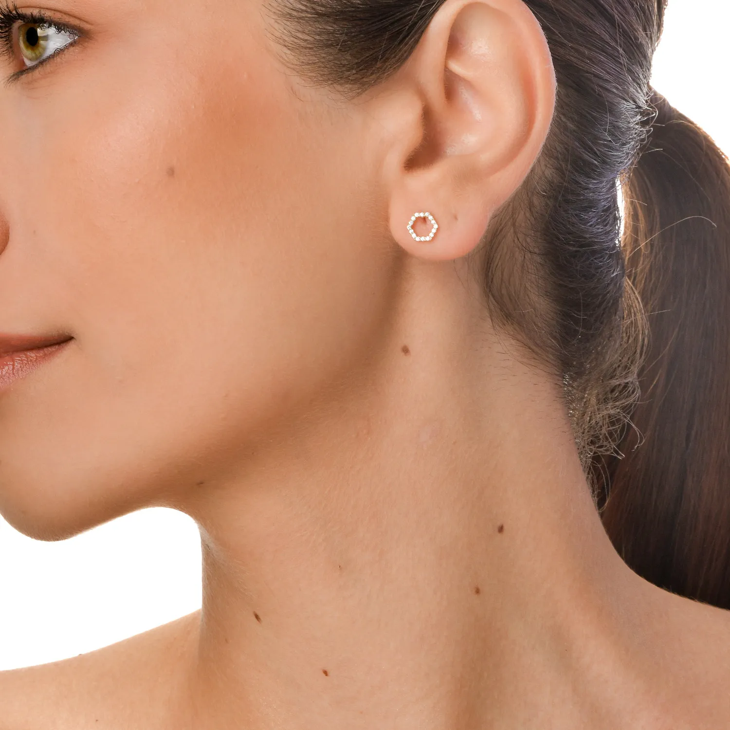 Cercei hexagonali din aur galben cu zirconii