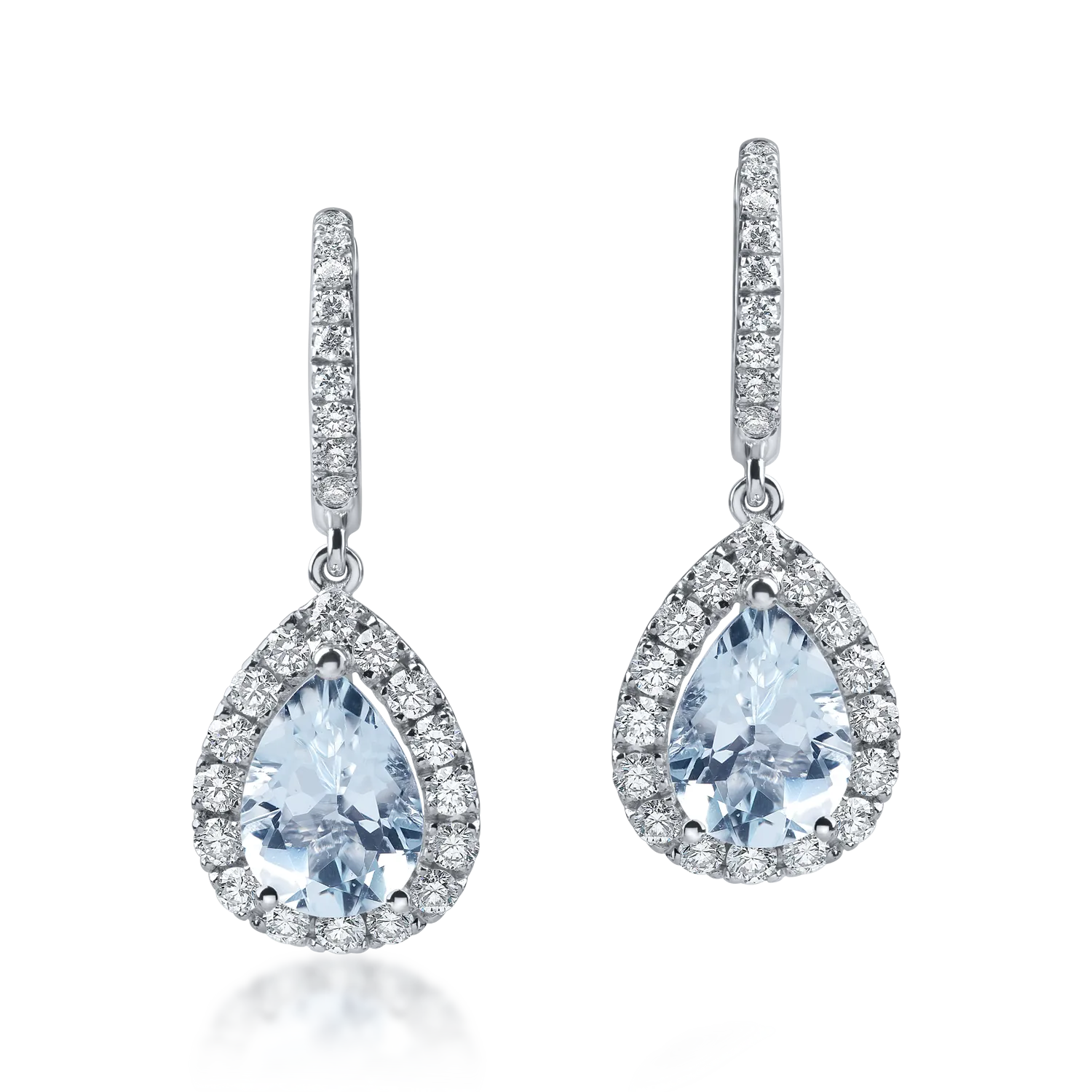 Cercei lacrima din aur alb cu acvamarine pear de 3.3ct si diamante de 1ct