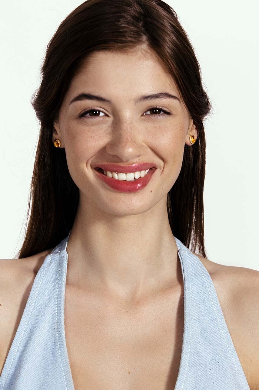 Cercei din colectia Lilou. Model cu un ornament de cuarț galben confectionat din fabricat din oțel inoxidabil placat cu aur de 18 carate.