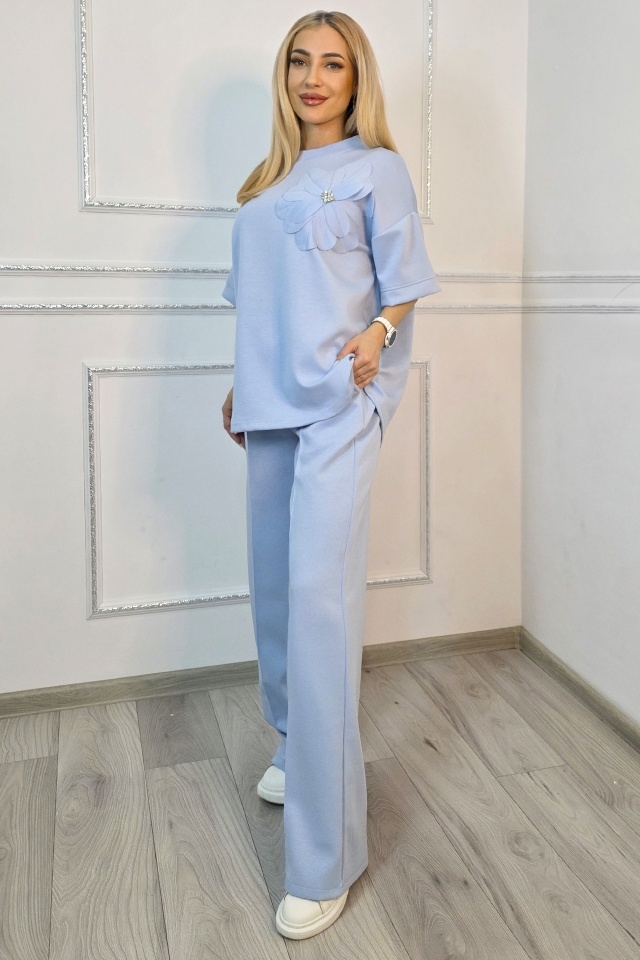 Tinuta completa fara efort de styling. Adaptabil pentru multiple tipuri silueta. Compleul este compus din doua piese coordonate, concepute pentru a oferi confort in purtare si libertate de miscare, fara a compromite structura croielii. Bluza are o linie lejera, cu maneci scurte si constructie fara sistem de inchidere, fiind usor de imbracat si adaptat pe diferite tipuri de silueta. Aplicatia tip floare este fixata pe partea frontala si nu este detasabila, fiind integrata in designul piesei. Pantalonii au croiala dreapta, cu lungime completa si talie elastica, completata de snur functional pentru reglare. ✔ De ce sa alegi acest compleu? Cele doua piese sunt gandite sa functioneze impreuna, dar pot fi purtate si separat, ceea ce extinde optiunile de styling din garderoba. Croiala lejera permite libertate de miscare pe parcursul intregii zile, iar talia elastica cu snur asigura ajustare rapida fara disconfort. Buzunarele laterale adauga functionalitate, iar constructia fara sisteme de inchidere simplifica utilizarea zilnica. Materialul mixt ofera echilibru intre rezistenta si flexibilitate, mentinand forma produsului dupa purtare si spalare. Caracteristici compleu: ? - bluza fara sistem inchidere, imbracare directa - aplicatie florala fixa pe partea frontala, cu pietre artizanale - guler rotund la baza gatului - talie elastica cu snur reglare integrat ? - pantaloni lungi croiala dreapta lejera - doua buzunare laterale functionale integrate - croiala lejera, adaptare pentru mai multe siluete - bluza maneci scurte, croiala dreapta larga - design modern cu efect optic vertical Compozitie material: 49% poliester, 45% vascoza, 6% elastan; Eticheta produsului contine informatii esentiale referitoare la intretinerea si spalarea corecta a articolelor vestimentare. Imaginile Fashionforyou au caracter informativ, iar nuanta, tonul si intensitatea culorii pot varia in functie de monitor/ecran telefon.
