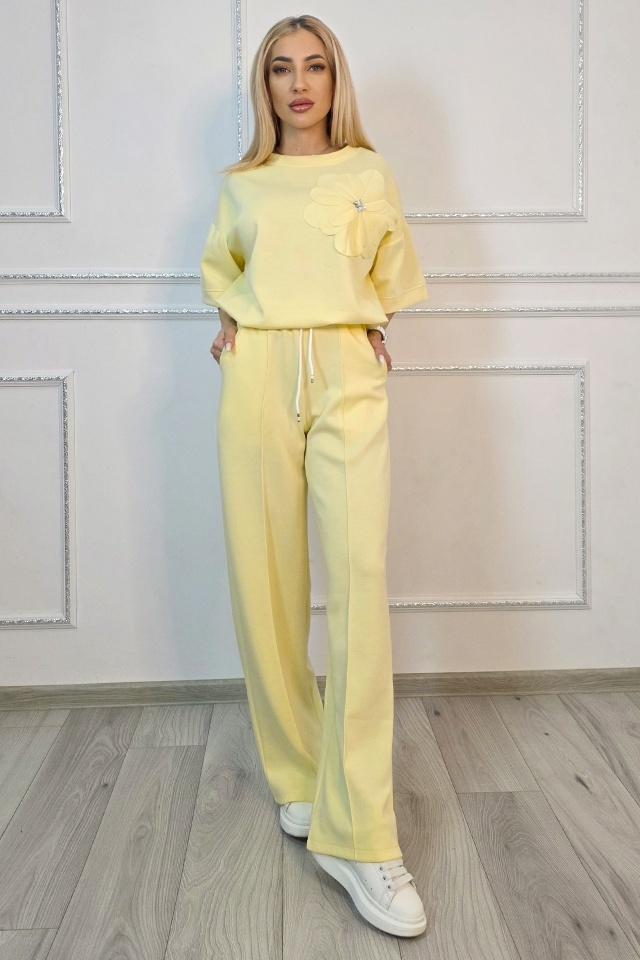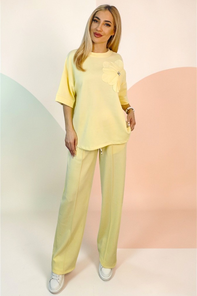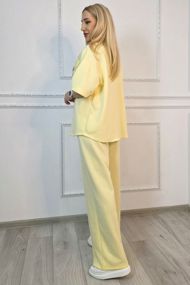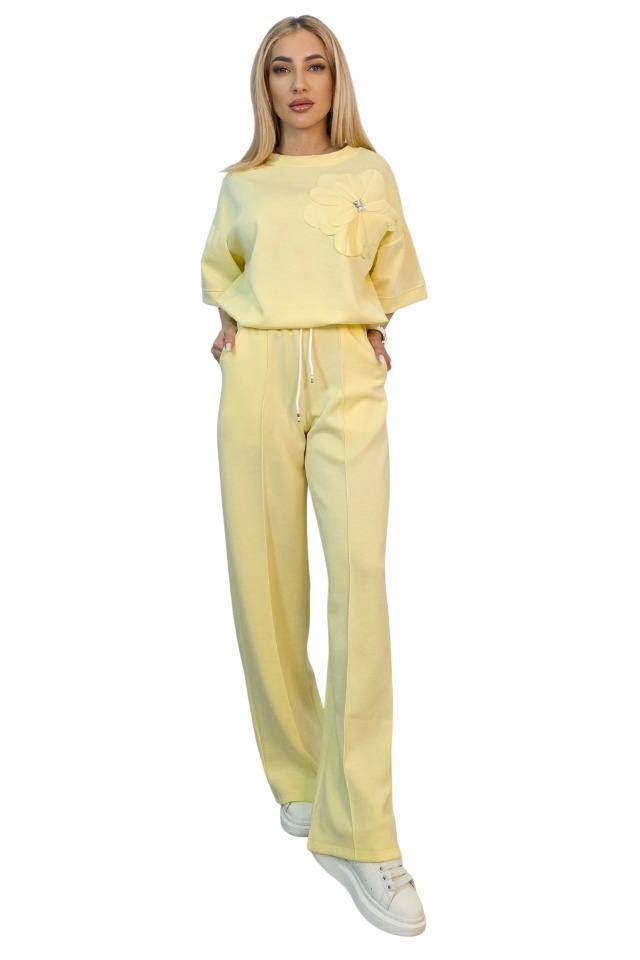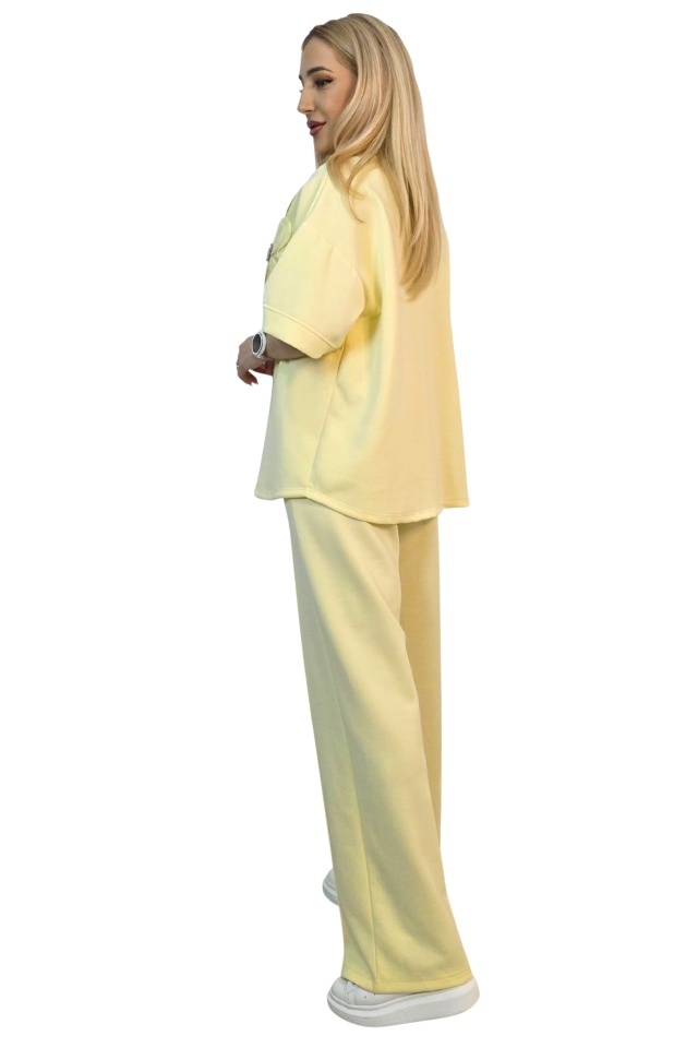 Tinuta completa fara efort de styling. Adaptabil pentru multiple tipuri silueta. Compleul este compus din doua piese coordonate, concepute pentru a oferi confort in purtare si libertate de miscare, fara a compromite structura croielii. Bluza are o linie lejera, cu maneci scurte si constructie fara sistem de inchidere, fiind usor de imbracat si adaptat pe diferite tipuri de silueta. Aplicatia tip floare este fixata pe partea frontala si nu este detasabila, fiind integrata in designul piesei. Pantalonii au croiala dreapta, cu lungime completa si talie elastica, completata de snur functional pentru reglare. ✔ De ce sa alegi acest compleu? Cele doua piese sunt gandite sa functioneze impreuna, dar pot fi purtate si separat, ceea ce extinde optiunile de styling din garderoba. Croiala lejera permite libertate de miscare pe parcursul intregii zile, iar talia elastica cu snur asigura ajustare rapida fara disconfort. Buzunarele laterale adauga functionalitate, iar constructia fara sisteme de inchidere simplifica utilizarea zilnica. Materialul mixt ofera echilibru intre rezistenta si flexibilitate, mentinand forma produsului dupa purtare si spalare. Caracteristici compleu: ? - bluza fara sistem inchidere, imbracare directa - aplicatie florala fixa pe partea frontala, cu pietre artizanale - guler rotund la baza gatului - talie elastica cu snur reglare integrat ? - pantaloni lungi croiala dreapta lejera - doua buzunare laterale functionale integrate - croiala lejera, adaptare pentru mai multe siluete - bluza maneci scurte, croiala dreapta larga - design modern cu efect optic vertical Compozitie material: 49% poliester, 45% vascoza, 6% elastan; Eticheta produsului contine informatii esentiale referitoare la intretinerea si spalarea corecta a articolelor vestimentare. Imaginile Fashionforyou au caracter informativ, iar nuanta, tonul si intensitatea culorii pot varia in functie de monitor/ecran telefon.
