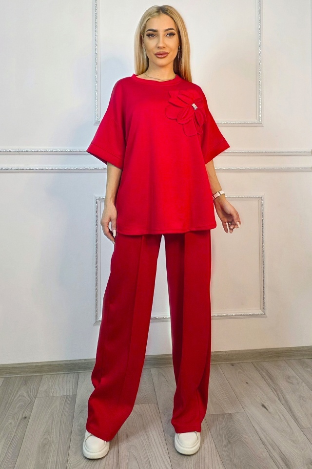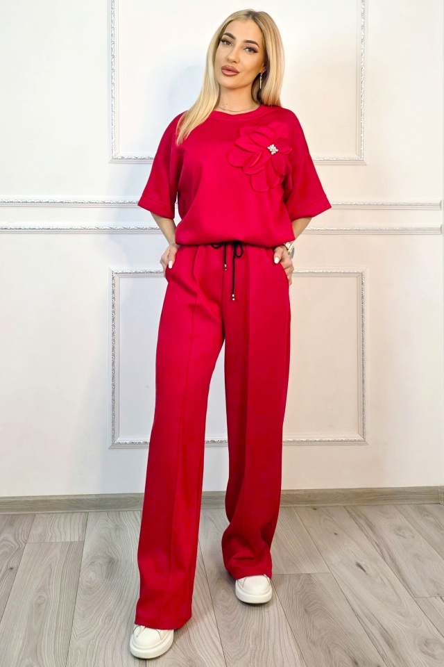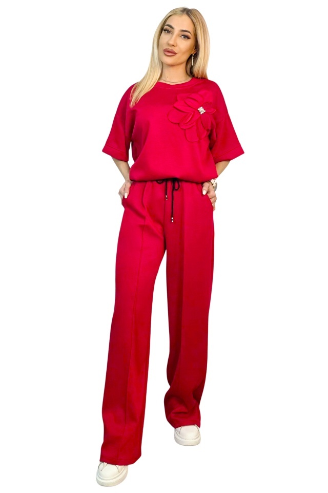 Tinuta completa fara efort de styling. Adaptabil pentru multiple tipuri silueta. Compleul este compus din doua piese coordonate, concepute pentru a oferi confort in purtare si libertate de miscare, fara a compromite structura croielii. Bluza are o linie lejera, cu maneci scurte si constructie fara sistem de inchidere, fiind usor de imbracat si adaptat pe diferite tipuri de silueta. Aplicatia tip floare este fixata pe partea frontala si nu este detasabila, fiind integrata in designul piesei. Pantalonii au croiala dreapta, cu lungime completa si talie elastica, completata de snur functional pentru reglare. ✔ De ce sa alegi acest compleu? Cele doua piese sunt gandite sa functioneze impreuna, dar pot fi purtate si separat, ceea ce extinde optiunile de styling din garderoba. Croiala lejera permite libertate de miscare pe parcursul intregii zile, iar talia elastica cu snur asigura ajustare rapida fara disconfort. Buzunarele laterale adauga functionalitate, iar constructia fara sisteme de inchidere simplifica utilizarea zilnica. Materialul mixt ofera echilibru intre rezistenta si flexibilitate, mentinand forma produsului dupa purtare si spalare. Caracteristici compleu: ? - bluza fara sistem inchidere, imbracare directa - aplicatie florala fixa pe partea frontala, cu pietre artizanale - guler rotund la baza gatului - talie elastica cu snur reglare integrat ? - pantaloni lungi croiala dreapta lejera - doua buzunare laterale functionale integrate - croiala lejera, adaptare pentru mai multe siluete - bluza maneci scurte, croiala dreapta larga - design modern cu efect optic vertical Compozitie material: 49% poliester, 45% vascoza, 6% elastan; Eticheta produsului contine informatii esentiale referitoare la intretinerea si spalarea corecta a articolelor vestimentare. Imaginile Fashionforyou au caracter informativ, iar nuanta, tonul si intensitatea culorii pot varia in functie de monitor/ecran telefon.