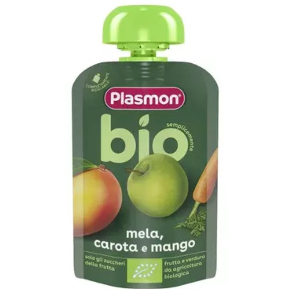 Pulpa Bio de fructe cu morcov, mango si mere de la Plasmon, ambalata in 100g, ofera o combinatie delicioasa si sanatoasa pentru bebelusi. Realizata din ingrediente de inalta calitate, acest piure este ideal pentru bebelusi de la 6 luni, fara adaos de sare sau amidon.Beneficii:Ofera un gust natural si delicat, ideal pentru bebelusi.Fara aditivi artificiali, cu ingrediente 100% biologice.Contribuie la o dieta echilibrata si sanatoasa.Beneficii:Ofera o combinatie placuta de arome cu morcov, mango si mereFara aditivi artificiali, cu ingrediente 100% biologiceContribuie la o dieta echilibrata si sanatoasa pentru bebelusiValori nutritionale:Energie: 54 kcal/228 kJ per 100gGrasimi: 0.3g, din care acizi grasi saturati: <0.1gGlucide: 11g, din care zaharuri: 8.9gProteine: 0.6gSare: 0.05gVitamina C: 30mgA se pastra intr-un loc racoros si uscat, departe de sursele de caldura. A se consuma inainte de data inscrisa pe ambalaj.Conform instructiunilor de pe pachet