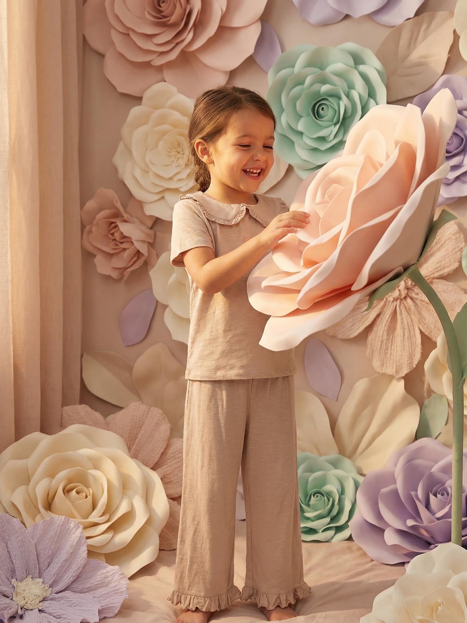 Sinsay - Pijama din bumbac în două piese cu broderie în formă de fundiță - bej