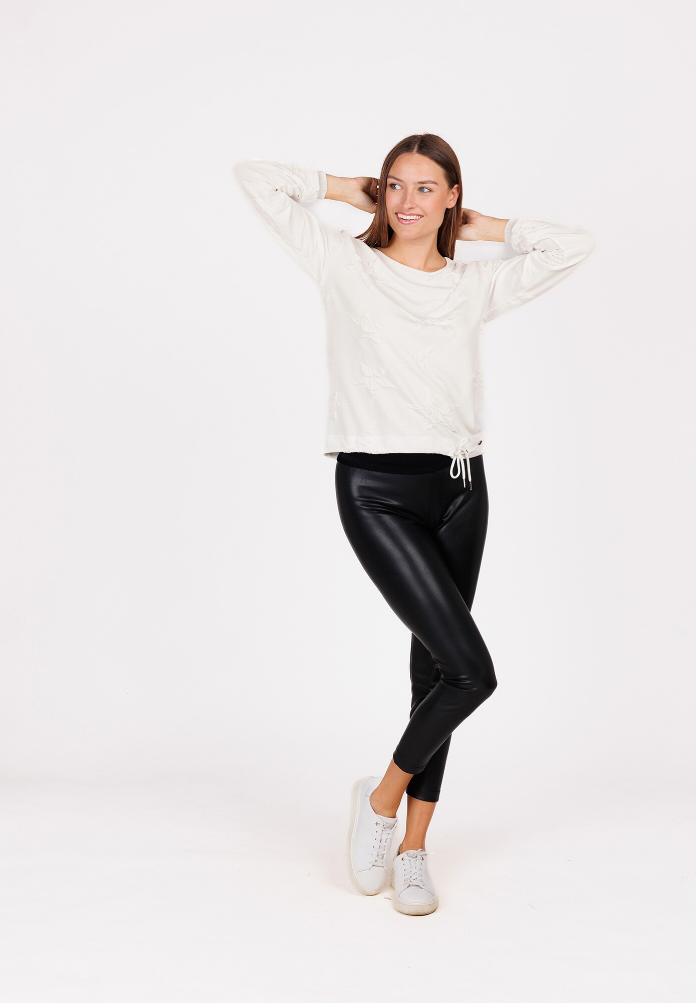 Design: Manșete cu striații; Material: Material sweat; Decolteu: Decolteu rotund; Imprimeu: Monocrom; Detalii: Tiv cu șiret, Suprafață structurată; Croi: Croi lejer; Lungime mâneci: Mâncecă lungă; Lungime: Lungime normală