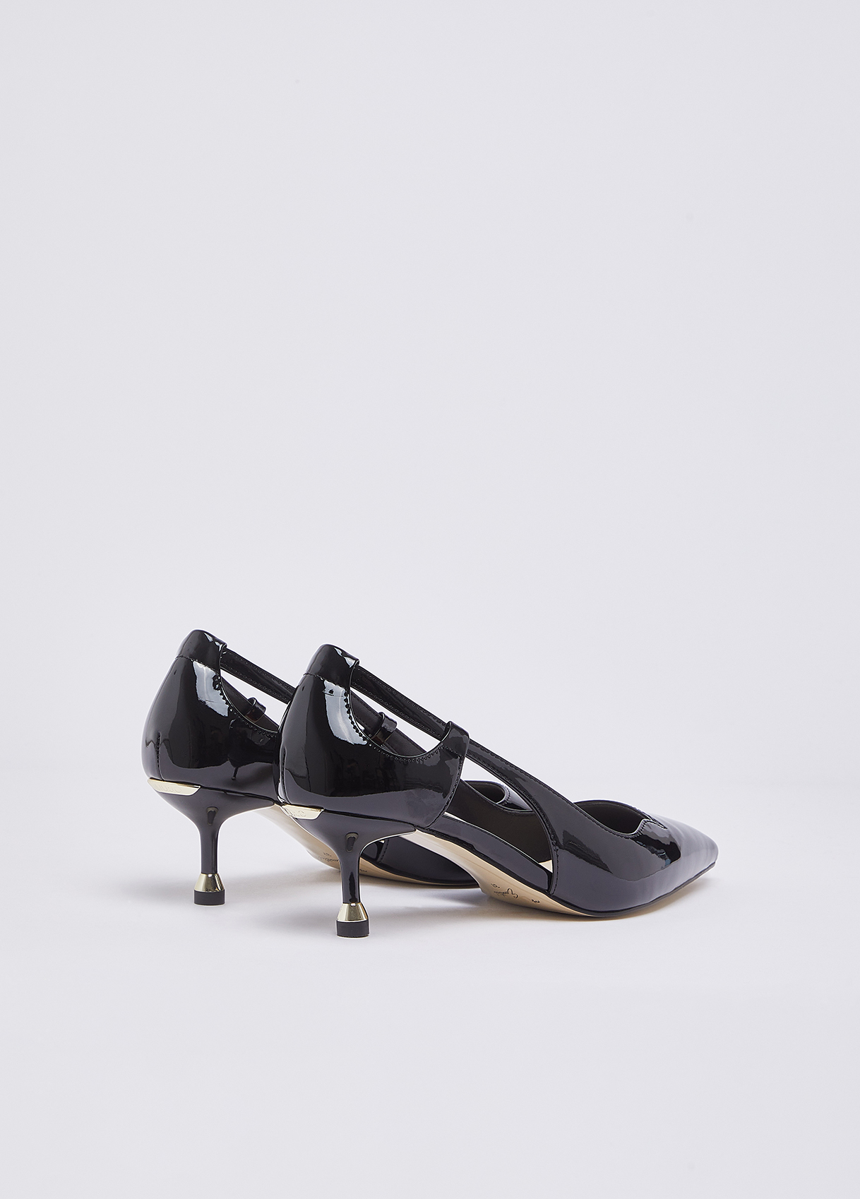 These iconic My Liu Jo Essentials black patent leather pumps with cut-out details embody elegance with bold character. The kitten heel and heart-shaped trim create a refined silhouette, perfect for adding character to any outfit. Court shoes with upper in patent leather Heart-shaped detail on the front Pointed toe Heart-print insole Branded bi-material sole with print My Liu Jo Essential Low stiletto heel with iconic metallic detailing Heel height: 5.5 cm