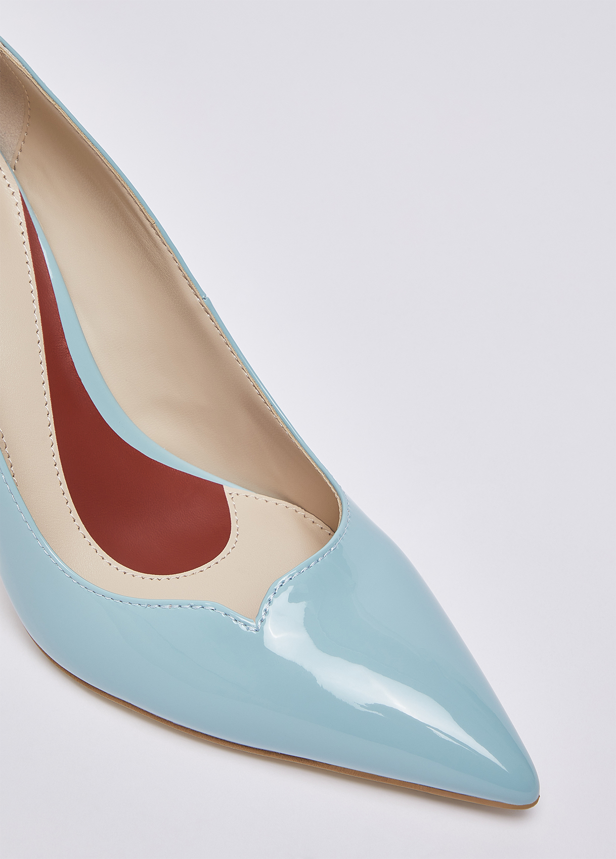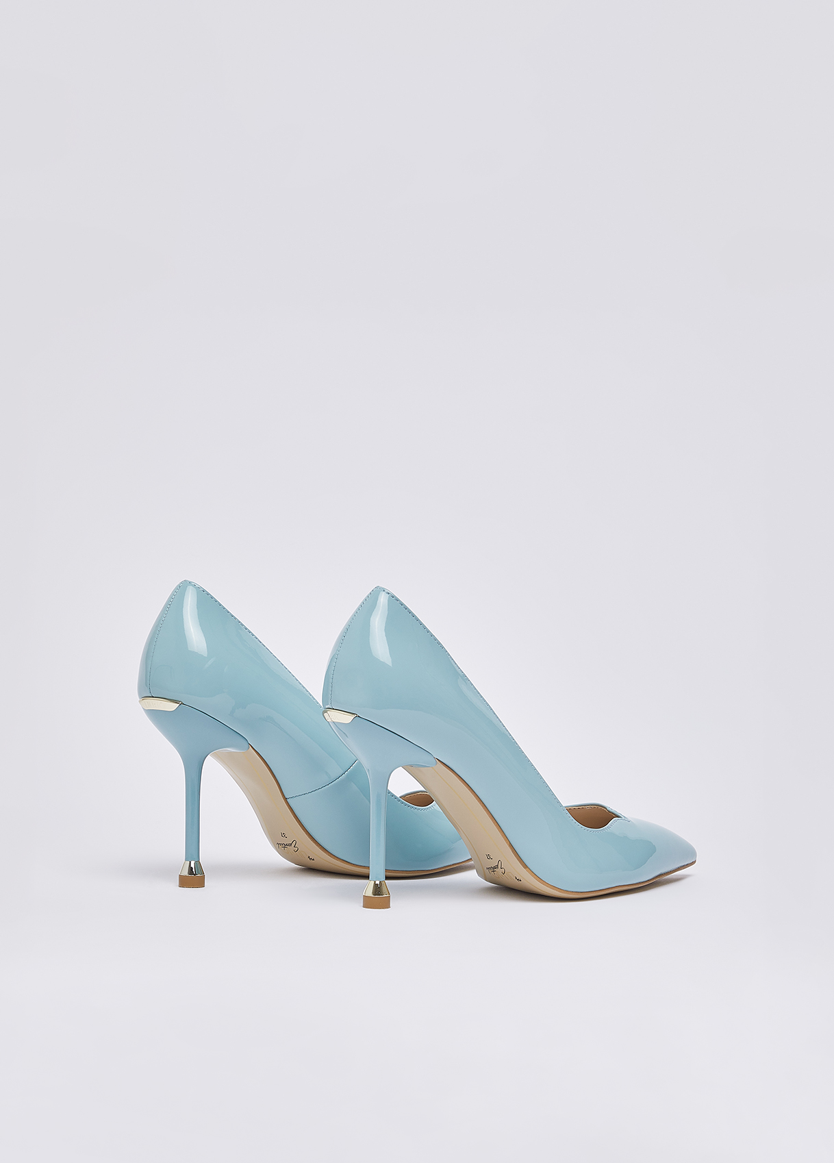 These My Liu Jo Essentials turquoise patent leather pumps channel femininity with bold allure. The heart-shaped instep, an iconic detail, and the stiletto heel create a modern and versatile silhouette, perfect for adding a glossy touch to any look. Patent leather court shoes Heart-shaped detail on the front Pointed toe The heart-print insole complements the pair, a sign of love and signature Liu Jo style Branded bi-material sole with print My Liu Jo Essential Stiletto heel with iconic metallic detailing Heel height: 9.5 cm
