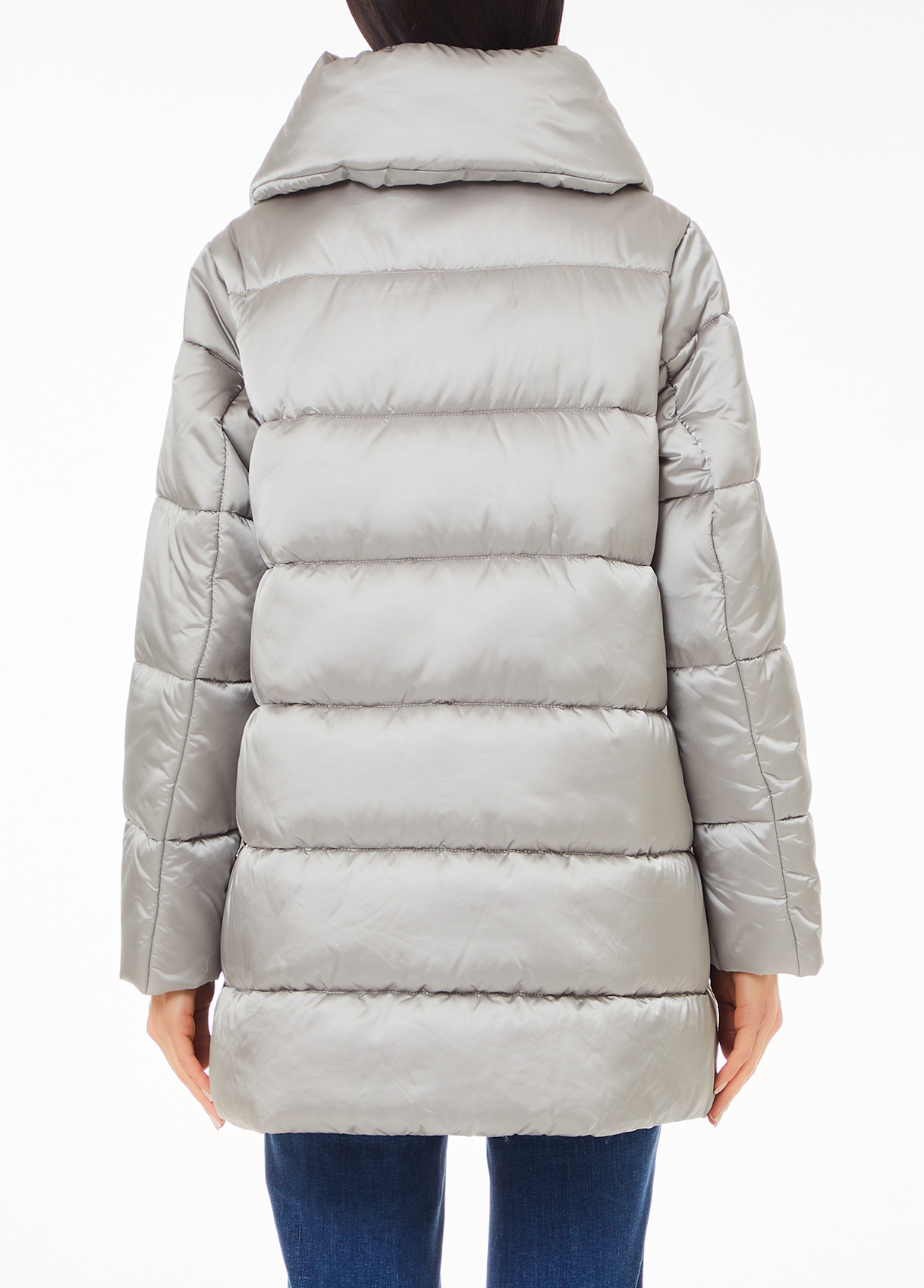 Quilted nylon jacket Wadded padding Turtle neck with drawstring Pockets on the sides Double-breasted button closure