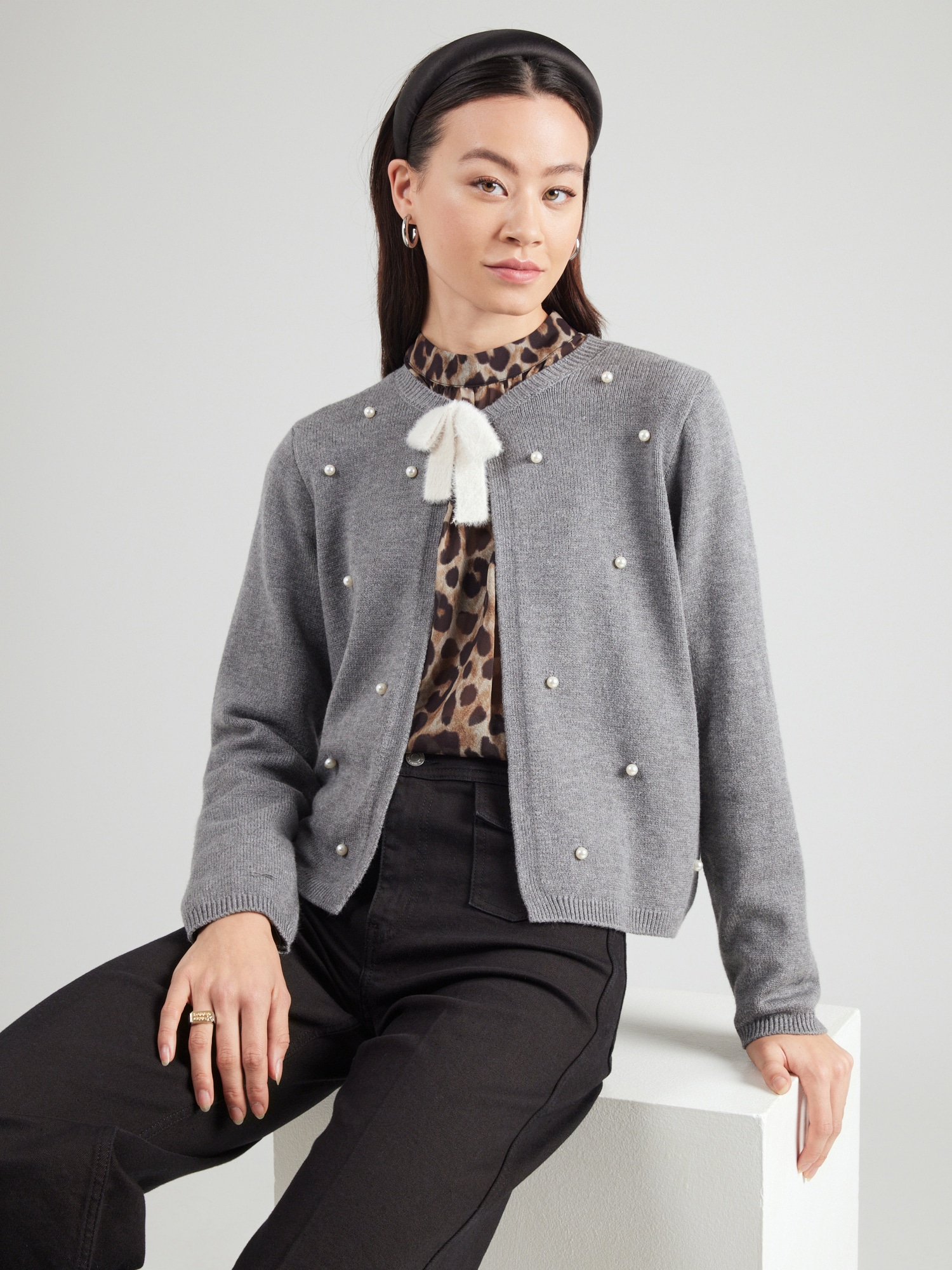 MORE & MORE Geacă tricotată gri amestecat / alb perlat