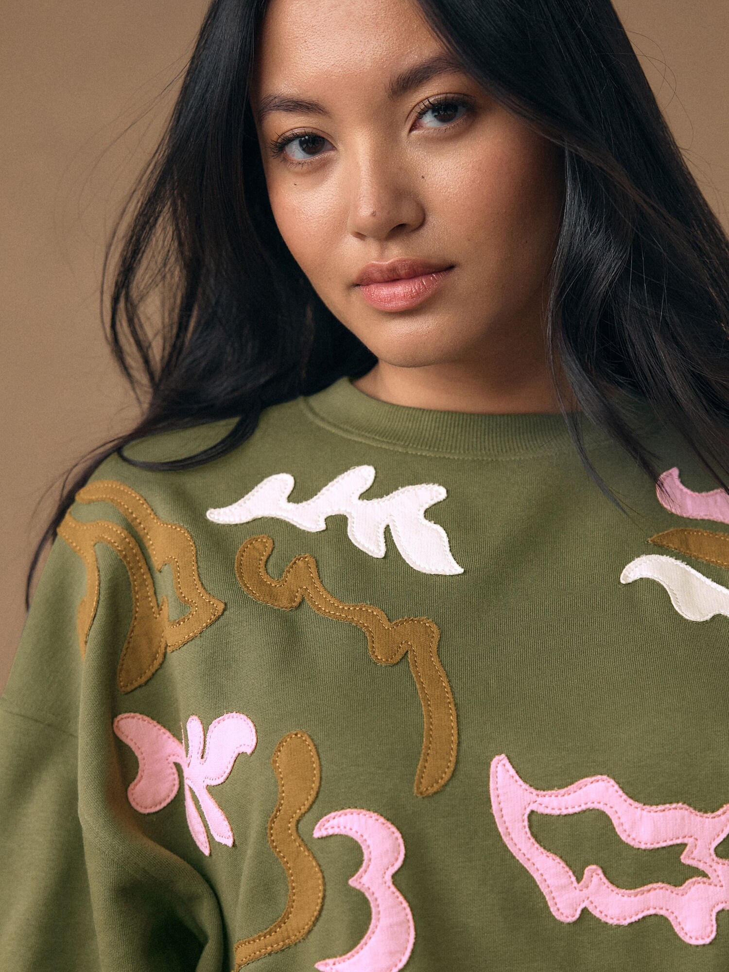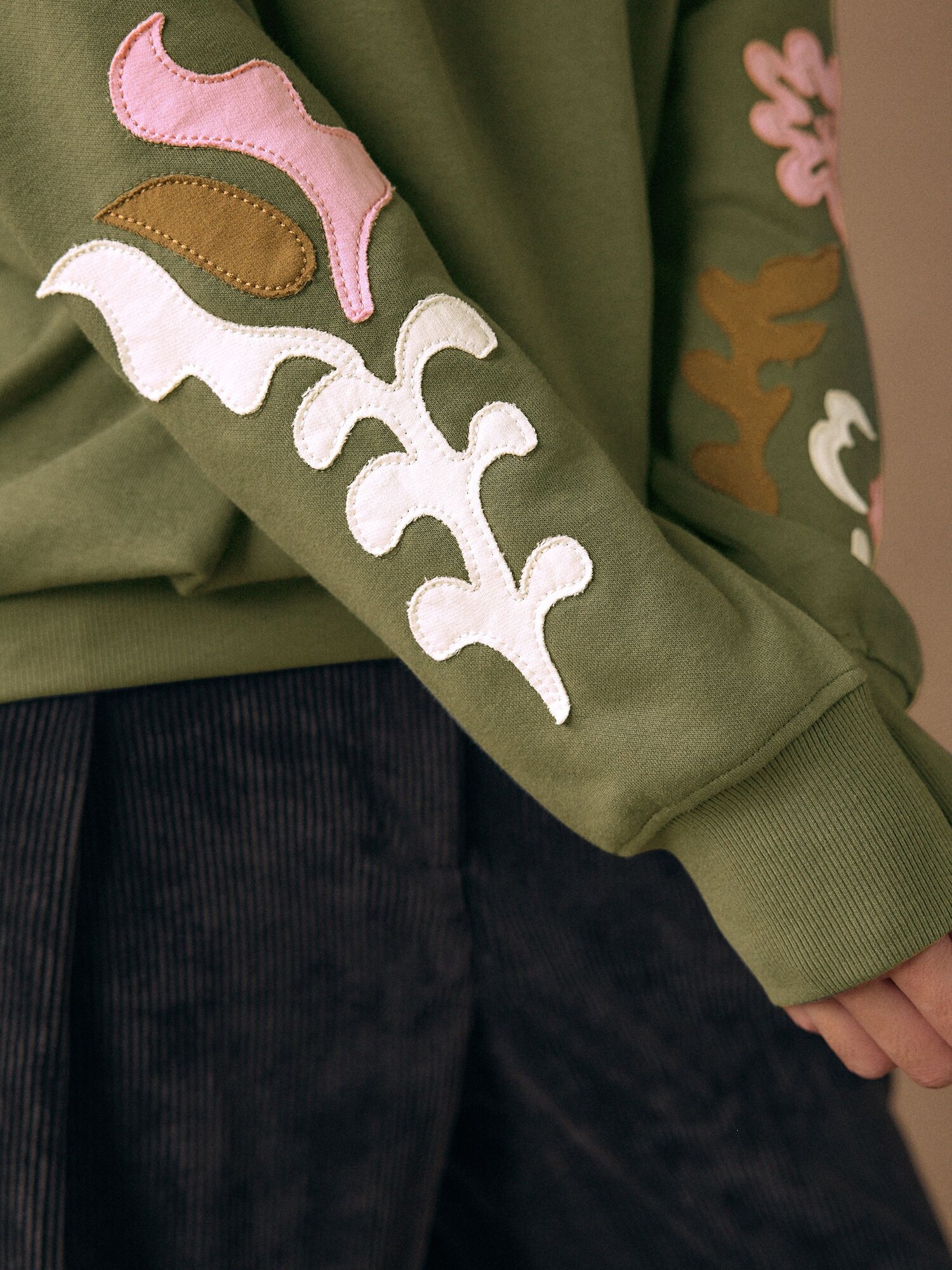 Design: Guler din tricot cu striații, Manșete cu striații; Material: Material sweat; Decolteu: Decolteu rotund; Imprimeu: Cu imprimeu floral; Detalii: Patches; Detalii: Aplicații; Croi: Croi normal; Lungime mâneci: Mâncecă lungă; Lungime: Lungime normală