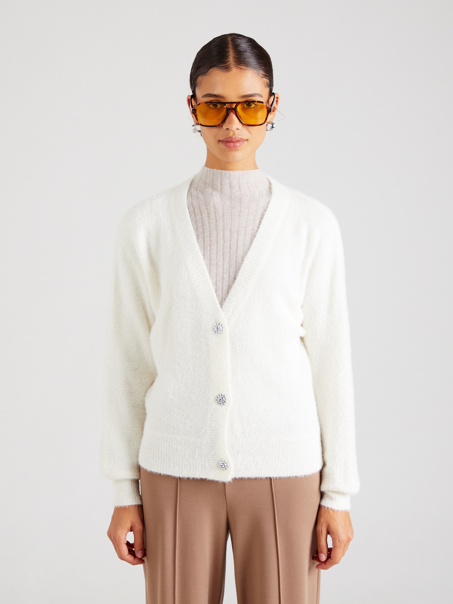 Îmbracă-te în confort și stil cu geaca tricotată ONLELLA, o piesă esențială pentru garderoba ta! Această geacă în alb murdar îmbină eleganța cu naturalețea, având un design rafinat ce include un șir elegant de nasturi și manșete cu striații, pentru un aspect contemporan. Fabricată dintr-un material moale și plăcut la atingere, aceasta se adaptează perfect felului tău de a te exprima. Decolteul în V subliniază grația siluetei tale, iar detaliile cu pietre decorative îi conferă un strop de strălucire. Cu un croi lejer și lungime standard, geaca ONLELLA se integrează armonios în outfitul tău, completându-l cu un aer sofisticat. Fă-ți un cadou astăzi și transformă fiecare zi într-o ocazie specială!