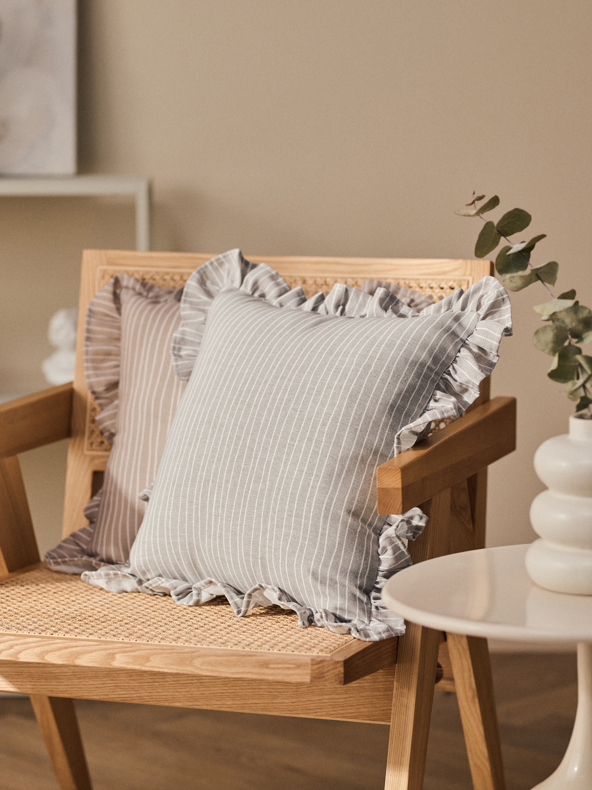 Sinsay - Funda de pernă cu dungi și volan - gri deschis