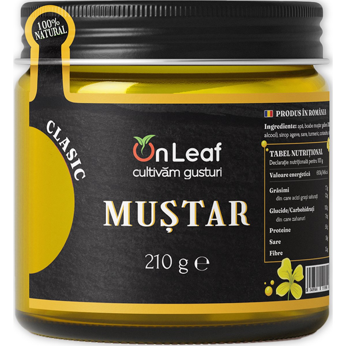 Toți știm ce-i ăla muștar, deci..Ce are în plus Muștarul OnLeaf? Nimic din ce n-ar trebui să aibă! ✅Ce are în minus Muștarul OnLeaf? Micii. Pentru că aici intervii tu! În toate testele noastre, muștarul a trecut cu felicitări de proba critică: combinația cu mici, carne la grătar și chiar și afumătura de la bunici. Fabricat în România , de oameni care chiar mănâncă ce produc! Așa am obținut o selecție de muștaruri corecte, cu gust intens, natural și greu de abandonat. Clasic sau.. cu Gust AutenticMuștarul Clasic OnLeaf nu reinventează muștarul. Dar, îl face cum trebuie. ✅Cu boabe de muștar din plin , oțet de calitate și o rețetă curată, e exact ce trebuie să fie un muștar: simplu, intens, potrivit cu tot ce-ai pune pe grătar (în special mici), în sandviș sau lângă alt preparat la alegere.E genul de muștar care sună cunoscut, dar are un gust diferit. Pentru că nu l-am făcut să semene cu ceilalți, ci cu ce ar trebui să fie de fapt. Informații Suplimentare:Cantitate netă: 210 grameA se păstra la loc uscat si răcoros!