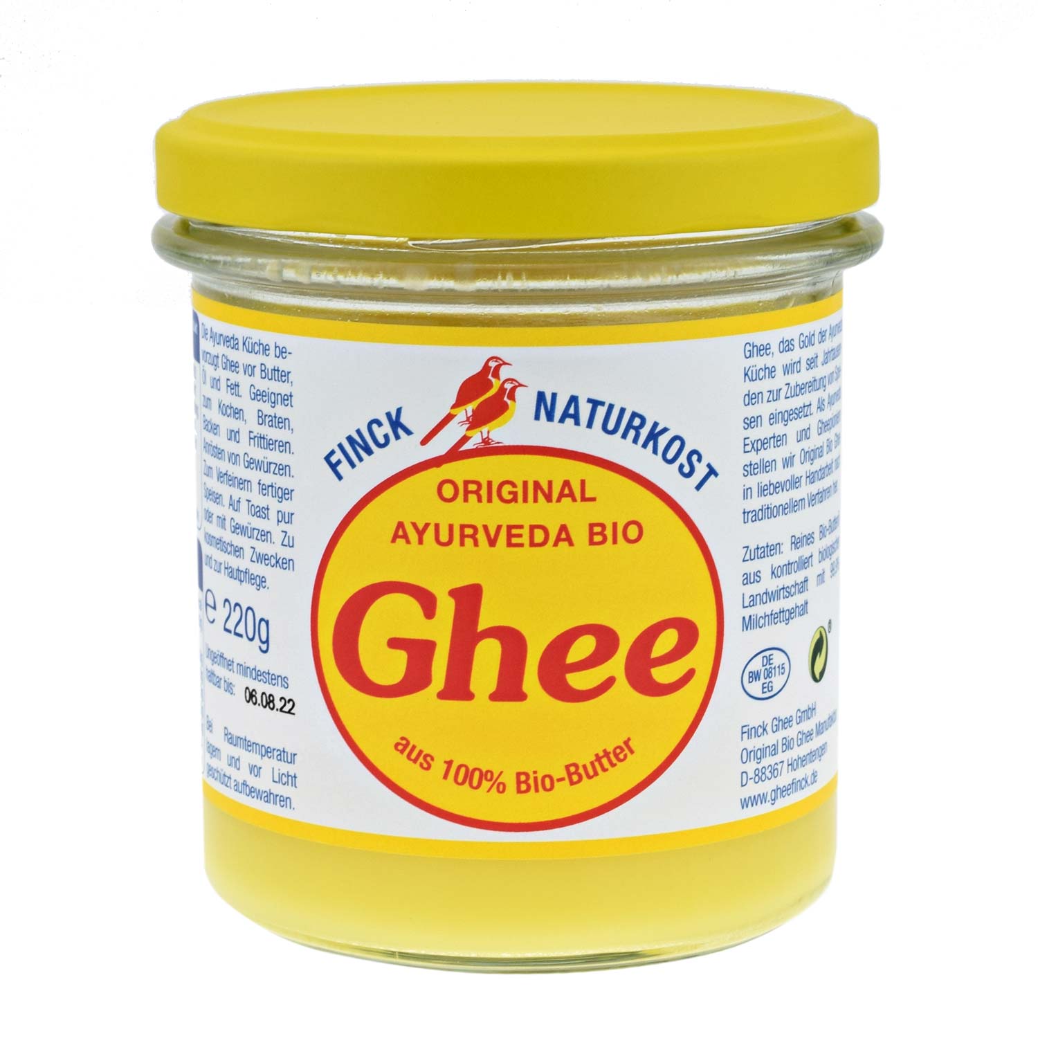 Finck Naturkost Ghee 100% organic unt ayurvedic ghee 220 g, 480 gGhee este unt clarificat 100% organic, fără apă, proteine din lapte și zahăr din lapte - ulei pur de unt. Are o aromă intensă și delicioasă de unt și un gust delicat de nucă, cu o notă subtilă de brânză.Ghee nu este la fel de gros sau cremos ca untul, ci mai degrabă fin și cristalin . Poate fi combinat cu tot felul de alimente și ingrediente.Ghee este elixirul vieții conform rețetelor tradiționale ayurvedice străvechi. Este cu adevărat „Slow Food” - fără procesare industrială. În bucătăria ayurvedică, ghee este folosit în loc de unt, ulei sau grăsime. Susține Agni, focul digestiei, și este ușor de digerat .Este nutritiv, promovează sănătatea și poate fi încălzit fără a-și pierde din calitate . În plus, este foarte bogat și poate fi păstrat fără refrigerare. Ghee oferă ușurare sistemului digestiv uman.Toxinele din alimentele noastre pot fi eliminate prin utilizarea ghee, așadar este posibil să menținem o formă fizică bună până la bătrânețe.Ghee a fost folosit în gătit de mii de ani. În clasamentul alimentelor ușor digerabile, Ghee ocupă locul 1, înaintea untului, uleiurilor vegetale și grăsimilor animale.Origine Finck Naturkost GheeVacile sunt hrănite în mare parte cu iarbă, cu adăugare ocazională de furaje bogate în proteine.Laptele pentru Ghee este produs conform reglementărilor stricte ale organizației BIOLAND.„Vitele noastre ar trebui să fie pe pășune ori de câte ori este posibil. Asta pentru că pășunatul în aer liber nu numai că asigură un sol mai bun și animale mai sănătoase, ci și lapte și carne de calitate mai bună.” Dar ne asigurăm și că animalele se simt confortabil în grajduri. În loc de stres și lupte pentru rang, există spațiu și locuri moi pentru a se întinde. Fie că este vorba de bovine de lapte sau de bovine de carne, acordăm o mare importanță furajelor sănătoase și naturale, de preferință provenite de la ferma noastră.„Ce mănâncă vacile crescute organic?” În timpul sezonului de creștere, vacile trebuie să aibă acces la pășune, unde mănâncă iarbă și ierburi proaspete. Dacă pășunatul nu este posibil în anumite cazuri, li se administrează și furaje verzi proaspete în grajd. Iarna, fermierul ecologic hrănește vacile cu fân, cereale și siloz, adică furaje verzi conservate (iarbă, trifoi). Majoritatea fermierilor de lactate oferă și un fel de „furaje concentrate”, inclusiv cereale organice și furaje minerale. Producția totală de furaje depinde foarte mult de condițiile naturale ale fermei.Sfaturi pentru utilizarea Ghee:Pentru gătit, copt, fierbere înăbușire, prăjit și friptură.Pentru prăjirea ușoară a condimentelor, astfel încât acestea să își poată dezvolta întreaga aromă.Ideal pentru gătit la abur, deoarece păstrează vitaminele.Pentru a înmuia mâncăruri gata preparate, de exemplu, pentru a adăuga legume, orez sau cereale.Pe pâine prăjită cu ierburi și condimente.INFORMAȚII NUTRIȚIONALE LA 100 gEnergie: 3763 kJ / 899 kcalGrăsimi: 99,9 g, din care acizi grași saturați: 65,8 g, acizi grași polinesaturați: 24,3 g, acizi grași mononesaturați / 3,6 g în plusCarbohidrați: 0,0 g, din care zaharuri: 0,0 gProteine: < 0,1 gSare: 0,0 g PROPRIETĂȚI ȘI COMPOZIȚIEIngrediente: ulei de unt pur 99,7%, din culturi organice certificate Bioland.Alergeni: conține lapte de vacăGreutate: 220g, 480gImportant : A se proteja de lumină, a se păstra la loc uscat și la temperatura camerei.