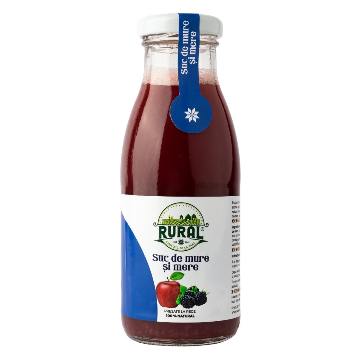 Suc 100% natural, produs exclusiv din fructe si legume romanesti. Fara adaos de zahar, apa, aditivi, conservanti sau coloranti. RURAL si-a luat angajamentul de a iti oferi o exerienta autentica si sanatoasa. Nascut din pasiunea pentru traditii si respectul profund pentru natura, RURAL isi propune sa aduca in viata ta esenta pura a fructelor si legumelor romanesti, fara nici un compromis asupra calitatii. Ei se bazeaza pe o selectie riguroasa a ingredientelor, colaborand exclusiv cu fermieri locali si utilizand tehnologii de ultima generatie pentru a-ti garanta un produs 100% natural, bogat in vitamine si nutrienti