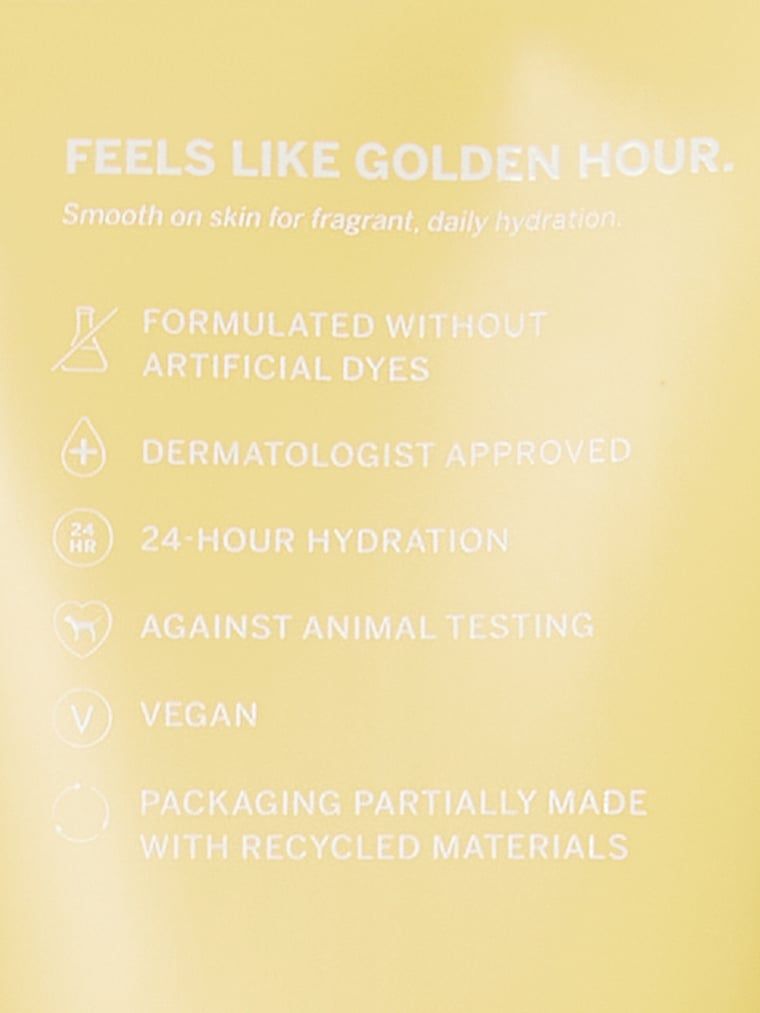 Vanilat și de visCUM SE SIMTE: Ora de aurCUM MIROASE: Precum un nor pufos și auriu de caramel, nucă de cocos și, bineînțeles, vanilie.PARFUM NOU! Ușor și dulce, traversat de un curent de aer proaspăt, noul nostru parfum de corp nu seamănă cu nicio aromă de vanilie pe care ai mai încercat-o până acum. Pufoasă și extrem de delicioasă. Cremoasă și reconfortantă. Fresh și aerisită. Îmbrățișează corpul precum razele soarelui. Este de ajuns o singură adiere a acestui amestec de caramel și nucă de cocos și vei deveni dependentă.Această formulă aprobată de dermatologi asigură o hidratare de 24 de ore și este formulată fără ftalați, sulfați, parabeni sau coloranți artificiali. FORMULAT FĂRĂ SULFAȚI, PARABENI, FTALAȚI SAU COLORANȚI ARTIFICIALI TESTAT DERMATOLOGICHIDRATARE 24 DE ORENU ESTE TESTAT PE ANIMALEVEGAN 236 ml/ 8 fl. oz TUB DIN 82% PLASTIC RECICLAT