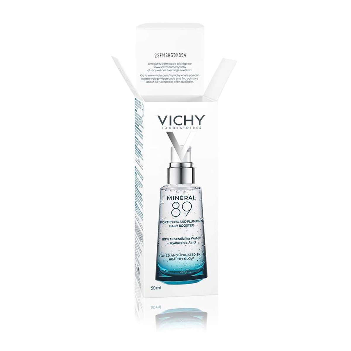 MINERAL 89 BOOSTER Descopera solutia Vichy pentru intarirea barierei de protectie a pielii: serumul Mineral 89 Booster. Formulat cu 89% Apa Vulcanica Vichy, bogata in 15 minerale si Acid Hialuronic cu greutate moleculara mare. O formula minimalista creata pentru a fi sigura & pentru o toleranta optima. Fara alcool* sifara parfum. Potrivit pentru tenul sensibil. Dupa o ora, pielea este hidratata, capata un efect de reumplere si este fortifiata cu 71%** Mineral 89 este recomandat de catre medici dermatologi din toata lumea si a fost testat de catre 3800 persoane cu toate tipurile de ten si toate fototipurile. *Fara alcool etilic. **Test instrumental, 24 de persoane, la o ora dupa agresiune. Fara Parfum si Fara Alcool * Hipoalergenic Potrivit pentru toate tipurile de ten, inclusiv tenul sensibil Textura lejera cu absorbtie rapida, fara senzatie grasa sau lipicioasa Formula minimalista cu 13 ingrediente *Alcool etilic HIDRATEAZA, REUMPLE, FORTIFIAZA Mineral 89 Booster este testat clinic pentru a fortifia si repara bariera de protectie a pielii impotriva agresiunilor externe. Hidrateaza si reumple pielea. Formula minimalist cu doar 13 ingrediente, sigur si eficient pentru toate tipurile de ten, chiar si cel sensibil. Formula lejera, absorbtie rapida, textura apoasa de gel Fara senzatie lipicioasa, grasa sau aspect lucios INGREDIENTE ACTIVE DERMATOLOGIC 1.APA VULCANICA VICHY Apa Vulcanica Vichy este incarcata cu 15 minerale. Aceasta fortifica si repara bariera de protectie a pielii impotriva agresiunilor expozomului, intarind-o in fata urmatoarelor agresiuni. 2.ACIDUL HIALURONIC Reduce deshidratarea mentinand apa in interiorul epidermei EFICACITATE DEMONSTRATA DERMATOLOGIC Formula a fost testata sub control dermatologic si este sigura pe toate tipurile de piele inclusiv pe pielea sensibila, pe toate fototipurile indifferent de varsta si gen. Actiunea expozomului este diferita de la o perosoana la alta, in functie de mediul de viata si factorii la care suntem expusi. Descopera Produsele din Gama Mineral 89, de la Vichy Produs: Mineral 89 Booster zilnic cu efect de reumplere si fortifiere Tip produs: Ingrijirea zilnica a tenului Tip Ten: Pentru toate tipurile de ten Beneficii: Protejeaza impotriva agresiunilor zilnice si fortifica barierea de protectie a pielii; hidrateaza instant si reumple pielea Textura: Textura de gel revigoranta Produs: Mineral 89 Probiotic Fractions Tip produs: Ingrijirea zilnica a tenului Tip Ten: Pentru tenul stresat: lipsit de luminozitate, elasticitate si cu linii fine. Beneficii: Repara si regenereaza bariera pielii. Regenereaza aspectul sanatos al pielii, reduce liniile fine si reda elasticitatea pielii Textura: Serum fluid Produs: Mineral 89 Eyes Tip Produs: Ingrijirea zilnica ? zona ochilor Tip Ten: Pentru aspectul oboist al ochilor, cu pungi sub ochi sau cearcane Beneficii: Fortifiaza, netezeste si ilumineaza conturul ochilor. Textura: Textura de gel revigoranta Rutina: *Studiu realizat pe piata de dermatocosmetice de catre Aplus in perioada Ianuarie- Martie 2022, pe un esantion de 100 de medici dermatologi din Romania. Atentionari: Acest produs nu necesita precautii speciale in conditii normale sau rezonabil previzibile de utilizare. Numele, denumirea comerciala inregistrata sau marca comerciala inregistrata a producatorului, precum si adresa postala si de e-mail la care producatorul poate fi contactat: LOreal Romania SRL, Calea Floreasca nr. 169A, Cladire A, etaj 6, sector 1, 014430, Bucuresti, Romania;
