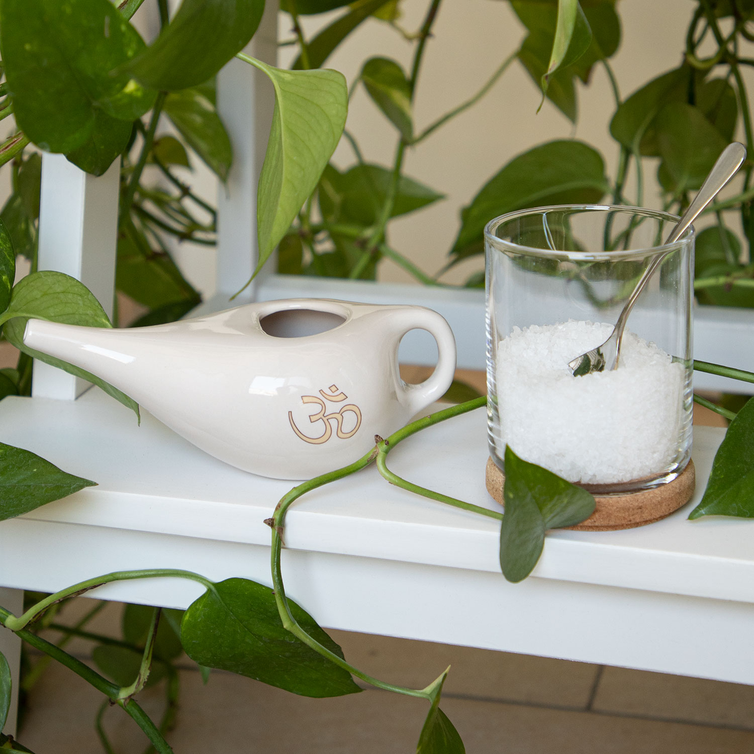 Bodhi Neti Pot OM pentru igiena nazală 250 ml – duș nazalGarantăm originalitatea și calitatea.Acest vas Neti din ceramică, decorat cu simbolul Om, are un volum de 250 ml și este folosit pentru igienizarea nazală (duș nazal) ca parte a practicii Shat Karma – tehnici yoghine de purificare – cunoscută sub numele de yoga kriya – jala neti. Ceainicul este recomandat pentru susținerea sănătății căilor respiratorii, dar și în cazuri de rinită alergică sau sezonieră.Practica jala neti, cunoscută și ca duș nazal, hidratează mucoasa nazală și curăță sinusurile. Soluția salină elimină impuritățile și poate contribui la susținerea sistemului imunitar. Vasul Neti este realizat din ceramică glazurată și ornat cu simbolul Om.Clătirea nasului cu apă caldă sărată are efecte benefice asupra întregii zone nazale: spală impuritățile precum praful, polenul sau alte particule și susține mecanismele naturale de protecție ale mucoasei nazale. Utilizarea regulată a vasului Neti poate ajuta la prevenirea disconfortului respirator și reduce congestia nazală, în mod natural și delicat.Articol recomandat: DE CE MERITĂ SĂ EXPERIMENTEZI TEHNICILE YOGHINE DE PURIFICARECARACTERISTICI ȘI UTILIZARE ALE VASULUI NETIMaterial: ceramică glazuratăVolum: 250 mlCuloare disponibilă: alb-crem cu simbolul Om auriuPentru curățarea nasului, dizolvă jumătate de linguriță (maximum 1 linguriță mică, nivelată) de sare în 250 ml de apă caldă. Înclină capul într-o parte, apleacă-te peste chiuvetă și lasă soluția să curgă prin nara de sus spre cea de jos. Apoi repetă pe partea opusă.Pentru soluția salină, folosește sare de calitate farmaceutică, sare de mare naturală cu granulație fină sau, ideal, sare de Himalaya.ÎNGRIJIREA VASULUI NETIÎți recomandăm să speli vasul cu apă și săpun, precum și să folosești apă fiartă fierbinte după fiecare utilizare.URMĂREȘTE VIDEOCLIPUL PENTRU A ÎNVĂȚA CUM SĂ FOLOSEȘTI VASUL NETI: