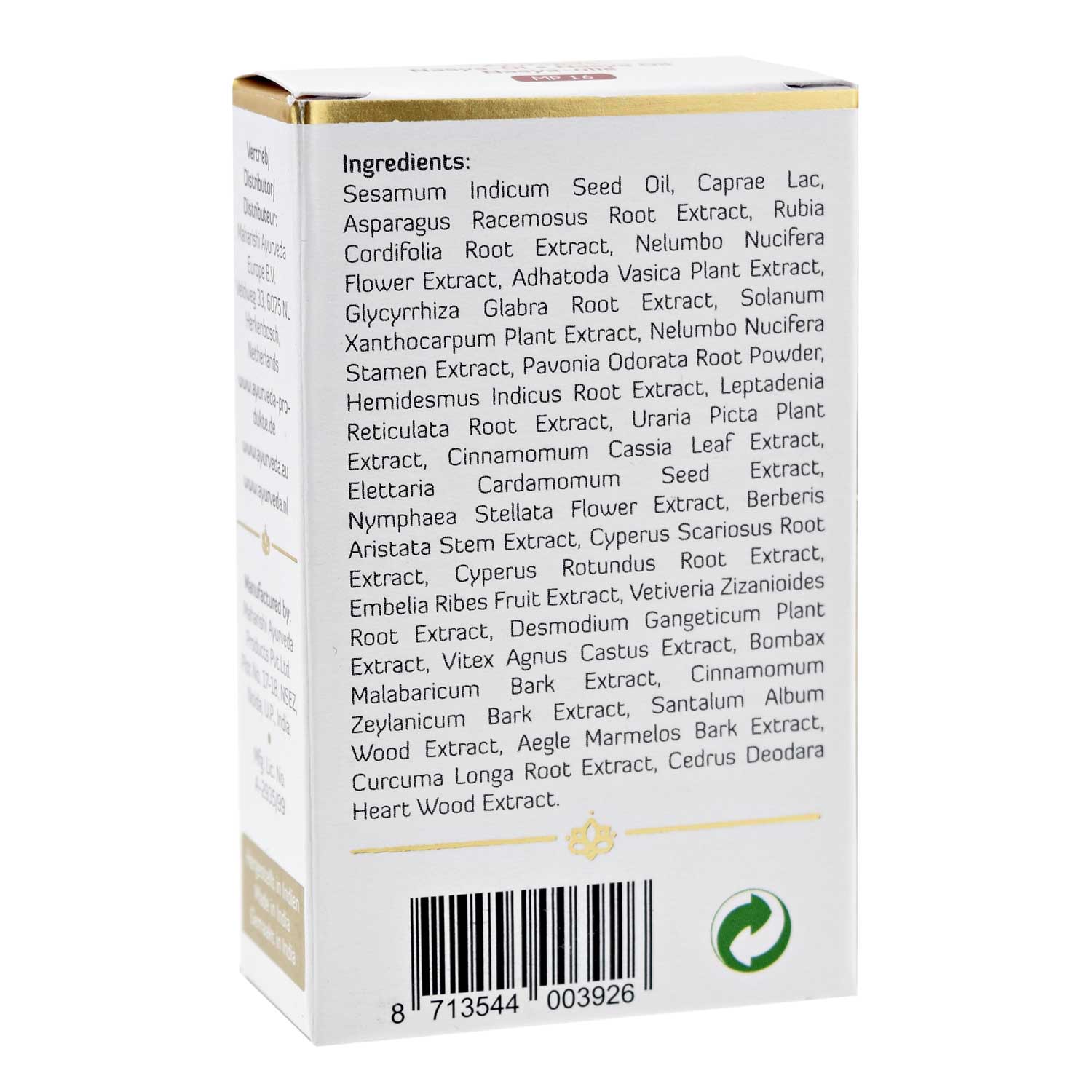 Ulei nazal ayurvedic Maharishi Ayurveda Nasya MP-16 10 ml Garantăm originalitatea și calitatea produsului. Uleiul Maharishi Nasya este un ulei ayurvedic compus din plante, uleiuri și condimente benefice. Se recomandă 2-3 picături zilnic în fiecare nară, ca parte a rutinei ayurvedice zilnice. Uleiul Nasya este utilizat în mod tradițional pentru răceală, răgușeală, afecțiuni ale căilor respiratorii superioare, precum și pentru tensiune musculară la nivelul gâtului, dureri de cap persistente și migrene. Ajută la calmarea congestiei și la hidratarea sinusurilor. Nu se recomandă aplicarea în primele zile ale unei afecțiuni acute sau în caz de febră. Flaconul este prevăzut cu pipetă pentru aplicare ușoară. Beneficiile utilizării uleiului Nasya: Poate sprijini eliminarea toxinelor din sinusuri, gât, creier, ochi, nas și urechi. Este asociat cu ameliorarea congestiei nazale, sinuzitei și astmului. Susține sistemul imunitar. Poate contribui la susținerea funcției organelor senzoriale. Este utilizat tradițional în cazul durerilor de cap și al stresului. Aplicat pe piele, poate susține sănătatea acesteia. Utilizarea regulată a Neti Pot-ului și curățarea sinusurilor pot contribui la reducerea simptomelor de răceală și alergie. Instrucțiuni pentru utilizarea uleiului în tehnica Nasyam: Masează ușor câteva picături de ulei (ideal ulei de susan) pe față și gât, evitând zona ochilor. Încălzește un prosop și aplică-l delicat pe față și gât. Așază-te întins, cu picioarele și brațele relaxate. Aplică 2-3 picături de ulei Nasya în fiecare nară. În caz de nevoie, poți crește doza până la maximum 5 picături. Menține capul ușor înclinat pe spate câteva momente, pentru a facilita absorbția uleiului. Masează ușor zona nărilor. Poți curăța sinusurile masând delicat interiorul nărilor cu degetele sau cu un bețișor curat. Cea mai bună perioadă pentru aplicare este dimineața, pe stomacul gol sau seara înainte de culcare. Nu folosi uleiul în același timp cu Jala Neti Pot. Combinarea uleiului cu apa în sinusuri poate favoriza dezvoltarea microorganismelor. Cel mai bine este să efectuezi neti înainte, așteptând cel puțin o oră înainte de aplicarea uleiului Nasya. Nu se recomandă utilizarea în fazele incipiente ale unei boli acute sau în prezența febrei. Urmărește videoclipul despre cum se folosește uleiul Nasya: PROPRIETĂȚI ȘI COMPOZIȚIE Conținut: 10 ml Ambalaj: flacon de sticlă cu pipetă Țara de origine: India Ingrediente: ulei de susan, lapte de capră, Nelumbium speciosum, extract de rădăcină de Asparagus racemosus, extract de rădăcină de Rubia cordifolia, extract de flori de Nelumbo nucifera, extract de Adhatoda vasica, extract de rădăcină de Glycyrrhiza glabra, extract de Solanum xanthocarpum, extract de stamine de Nelumbo nucifera, pudră de rădăcină de Pavonia odorata, extract de rădăcină de Hemidesmus indicus, extract de rădăcină de Leptadenia reticulata, extract de Uraria picta, extract de frunze de Cinnamomum cassia, extract de semințe de Elettaria cardamomum, extract de flori de Nymphaea stellata, extract de Berberis aristata, extract de rădăcină de Cyperus scariosus, extract de rădăcină de Cyperus rotundus, extract de fructe de Embelia ribes, extract de rădăcină de Vetiveria zizanoides, extract de Desmodium gangeticum, extract de Vitex agnus-castus, extract de scoarță de Bombax malabaricum, extract de scoarță de Cinnamomum zeylanicum, extract de lemn de Santalum album, extract de scoarță de Aegle marmelos, extract de rădăcină de Curcuma longa, extract de lemn de Cedrus deodara. ÎNGRIJIRE Păstrează produsul într-un loc răcoros, uscat și ferit de lumina directă. Temperatura scăzută poate îngroșa uleiul în mod natural. Pentru o aplicare optimă, încălzește-l într-o baie de apă la 36-40°C. Agită bine sticla înainte de utilizare. Articol: DE CE MERITĂ SĂ FOLOSEȘTI TEHNICILE DE CURĂȚARE DIN YOGA