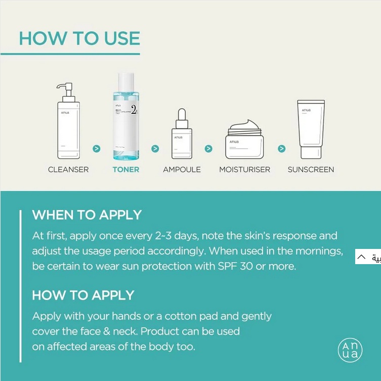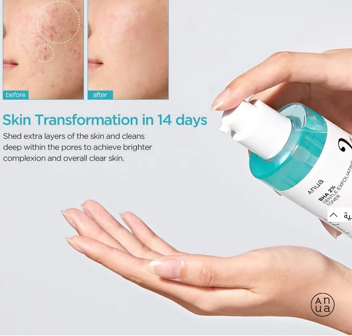 ? Anua – BHA 2% Gentle Exfoliating Toner – Tonic exfoliant blând cu acid salicilic pentru pori curați și ten uniform ✨ Exfoliere delicată, piele netedă și echilibrată Anua BHA 2% Gentle Exfoliating Toner este un toner exfoliant cu acid salicilic (BHA) în concentrație de 2%, conceput pentru a curăța eficient porii, a reduce punctele negre și a netezi textura pielii. Formula sa ușoară, fără parfum, îmbină acțiunea exfoliantă cu ingrediente calmante și hidratante, astfel încât pielea rămâne curată, catifelată și confortabilă după fiecare utilizare. Ideal pentru tenul gras, mixt sau predispus la imperfecțiuni. ________________________________________ ✨ Ingrediente active și rolul lor • Acid salicilic 2% ( BHA) – exfoliază ușor stratul superficial al pielii, curăță porii în profunzime și reglează secreția de sebum. • Extract din arbore de ceai – are proprietăți antibacteriene și antiinflamatoare, reducând coșurile și roșeața. • Ceramide – refac bariera hidrolipidică și protejează pielea de deshidratare. • Pantenol (provitamina B5) – calmează, regenerează și oferă hidratare durabilă. • Acid hialuronic – reține apa în epidermă, menținând pielea suplă și elastică. ________________________________________ ? Beneficii principale • curăță eficient porii înfundați; • reduce punctele negre și previne apariția coșurilor; • reglează secreția de sebum; • netezește și uniformizează textura pielii; • calmează și hidratează pielea; • respectă echilibrul natural al barierei cutanate. ________________________________________ ? Potrivit pentru • pielea grasă și mixtă; • pielea predispusă la acnee și imperfecțiuni; • pielea cu puncte negre și pori dilatați; • pielea sensibilă care necesită exfoliere blândă. ________________________________________ Cum se utilizează 1. Aplică tonerul pe o dischetă de bumbac sau direct cu palmele curate, pe tenul uscat. 2. Evită zona ochilor și a buzelor. 3. Folosește-l seara, de 2–3 ori pe săptămână, în funcție de sensibilitatea pielii. 4. După aplicare, continuă cu o cremă hidratantă calmantă. ? Este esențial să aplici cremă cu SPF în timpul zilei pe durata utilizării acestui produs. ________________________________________ ? Concluzie Anua BHA 2% Gentle Exfoliating Toner oferă o exfoliere eficientă dar delicată, ajutând pielea să respire și să se regenereze fără a o irita. Formula sa echilibrată curăță porii, îmbunătățește textura pielii și reduce vizibil imperfecțiunile, transformând tenul într-unul mai neted, mai clar și mai luminos. ________________________________________ ❓ FAQ 1. Este potrivit pentru pielea sensibilă? Da, formula este echilibrată cu pantenol, ceramide și acid hialuronic, care reduc potențialul de iritare. 2. Poate fi folosit zilnic? Se recomandă utilizarea de 2–3 ori pe săptămână. Dacă pielea tolerează bine produsul, frecvența poate fi crescută treptat. 3. Pot aplica seruri sau acizi după el? Nu se recomandă combinarea imediată cu alți acizi sau retinol. Așteaptă 15–20 minute sau alternează zilele de utilizare. 4. Când se observă primele efecte? Majoritatea utilizatorilor raportează o piele mai netedă și pori mai curați după aproximativ 2–3 săptămâni de utilizare constantă. Informații utile Cantitate : 150 ml Țara de origine : Coreea de Sud Va recomandam sa efectuați un test de alergie înainte de prima utilizare. Click AICI pentru mai multe informatii. Compozitie : Aqua, Dipropylene Glycol, 1,2-Hexanediol, Salicylic Acid, C12-14 Pareth-12, Octyldodeceth-16, Melaleuca Alternifolia (Tea Tree) Extract, Pentylene Glycol, Salix Alba (Willow) Leaf Extract, Oenothera Biennis (Evening Primrose) Flower Extract, Ulmus Davidiana Root Extract, Pinus Palustris Leaf Extract, Pueraria Lobata Root Extract, Centella Asiatica Extract, Ficus Carica (Fig) Fruit Extract, Hydrogenated Lecithin, Sodium Hyaluronate, Sodium Citrate, Citric Acid, Xan- than Gum, Disodium EDTA, Panthenol, Tocopherol, Ceramide NP, Butylene Glycol, Zinc Sulfate, Triethylhexanoin, Cholesterol, Hydrogenated Polydecene, Glyceryl Stearate, Cetearyl Alcohol, Potassium C11- 15 Alkyl Phosphate, Ceramide NG, Dimethicone, Ceramide AS, Ceramide AP, Ceramide NS, Dimethylsi- lanol Hyaluronate, Hydrolyzed Sodium Hyaluronate, Hydrolyzed Hyaluronic Acid, Potassium Hyaluronate, Hyaluronic Acid, Sodium Hyaluronate Crosspolymer, Hydroxypropyltrimonium Hyaluronate, Sodium Hyaluronate Dimethylsilanol, Sodium Acetylated Hyaluronate, Glycine, Glutamic Acid, Glutamine, Lysine, Leucine, Methionine, Valine, Serine, Cysteine, Citru- lline, Asparagine, Aspartic Acid, Isoleucine, Alanine, Arginine, Ornithine, Taurine, Tyrosine, Threonine, Tryptophan, Phenylalanine, Proline, Histidine, Cera- mide EOP, Phytosphingosine, Ethylhexylglycerin