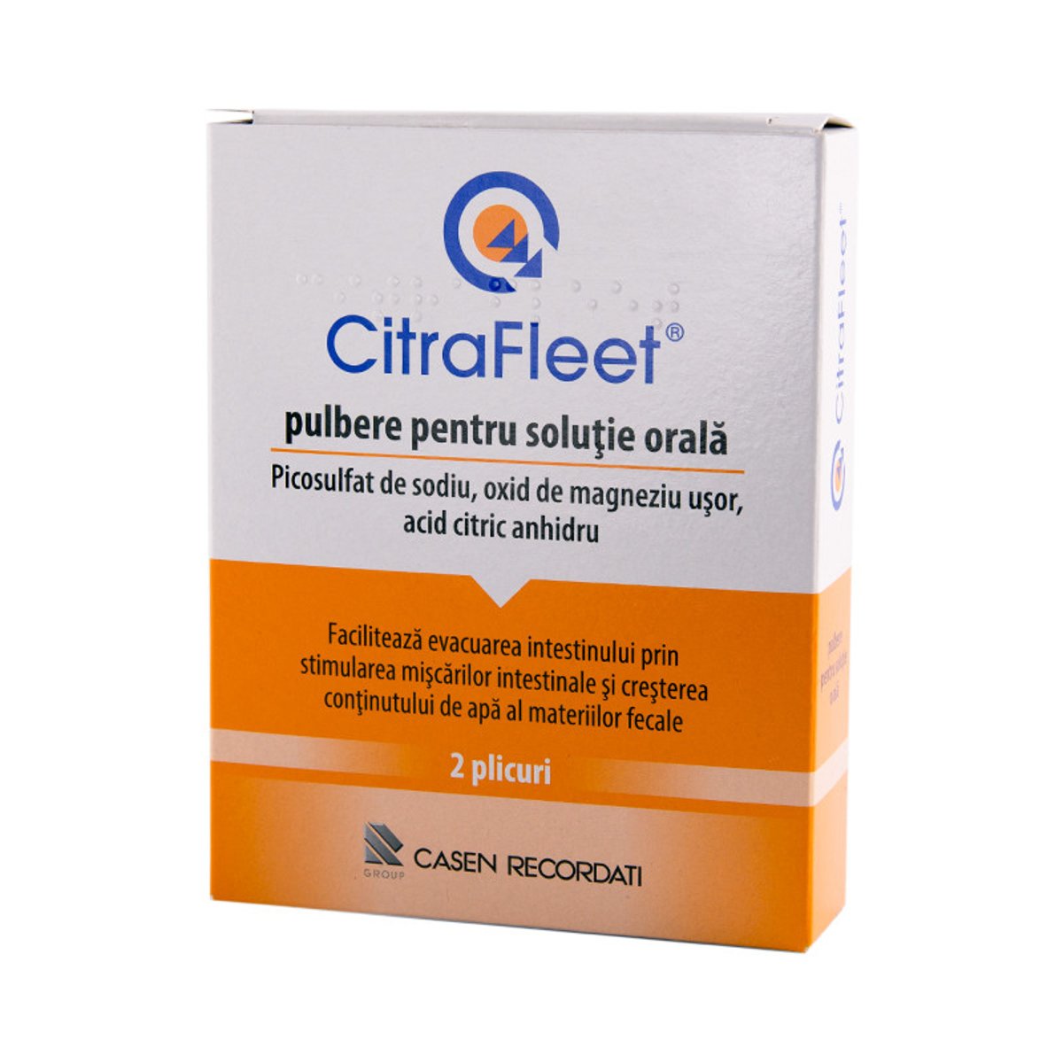 Compozitie. Substantele active sunt picosulfat de sodiu 10,0 mg, oxid de magneziu usor 3,5 g, acid citric anhidru 10,97 g per plic. - Celelalte componente sunt hidrogenocarbonat de potasiu, zaharina sodica, aroma de lamaie (aroma de lamaie, maltodextrina, tocoferol) Indicatii terapeutice. Luati CitraFleet pentru a va curata intestinul (cunoscut si sub denumirea de intestin subtire si colon) inainte de a efectua o procedura de diagnostic ce necesita un intestin curat, de exemplu colonoscopie (procedura prin care se vizualizeaza interiorul intestinului cu ajutorul unui instrument lung, flexibil, pe care medicul il introduce prin anus) sau examinare cu raze X. CitraFleet este o pulbere care are gust si miros de lamaie. Acesta contine doua tipuri de laxative amestecate in fiecare plic care, atunci cand sunt dizolvate in apa si baute, au efect de spalare si curatare a intestinului. Este important sa aveti intestinul golit, curatat, pentru ca medicul sau chirurgul sa il poata vedea clar. CitraFleet este indicat la adulti (inclusiv varstnici) cu varsta de 18 ani sau peste. Doze si mod de administrare. Fiti pregatit sa aveti scaune moi, frecvente, in orice moment dupa ce luati o doza de CitraFleet. Acest lucru este normal si indica faptul ca medicamentul isi exercita actiunea. Poate fi important sa va asigurati accesul la o toaleta pana cand dispar efectele medicamentului. Este important sa urmati o dieta speciala (cantitati reduse de alimente solide) in ziua dinaintea planificarii procedurii. Cand incepeti sa luati plicurile din acest medicament, nu trebuie sa mancati deloc alimente solide, pana dupa terminarea procedurii. Trebuie sa urmati intotdeauna dieta prescrisa de medic. Daca aveti intrebari, adresati-va medicului dumneavoastra sau farmacistului. Cu exceptia cazului in care medicul dumneavoastra va recomanda altfel, nu trebuie sa luati o doza mai mare decat doza recomandata pe o perioada de 24 ore. Trebuie sa vi se dea doua plicuri de CitraFleet. Fiecare plic contine o doza pentru adulti. Tratamentul poate fi administrat intr-unul din cele doua moduri: · un plic in seara dinaintea efectuarii procedurii si al doilea plic in dimineata zilei in care se efectueaza procedura sau · un plic dupa amiaza si al doilea plic in seara dinaintea efectuarii procedurii. Aceasta schema este recomandata cand procedura este planificata dimineata devreme. Perioada de timp intre administrarea celor doua plicuri trebuie sa fie de cel putin 5 ore. Fiecare plic trebuie reconstituit intr-un pahar cu apa. Nu diluati in continuare medicamentul prin consumarea de lichide imediat dupa administrarea fiecarui plic. Asteptati zece minute dupa ce luati fiecare plic, apoi beti aproximativ 1,5-2 litri de diferite lichide limpezi, cu o frecventa de aproximativ 250 ml (un pahar) pana la 400 ml (un pahar mare) pe ora. Pentru evitarea deshidratarii se recomanda supe limpezi si/sau solutii echilibrate de electroliti. Se recomanda sa nu se consume doar apa plata sau demineralizata. Dupa ce ati luat al doilea plic si ati baut 1,5-2 litri de lichid, nu beti si nu mancati nimic timp de cel putin 2 ore inainte de procedura sau dupa cum v-a spus medicul dumneavoastra. Precautii. inainte sa luati CitraFleet adresati-va medicului dumneavoastra sau farmacistului daca: - vi s-a efectuat recent o interventie chirurgicala la nivelul intestinului - aveti probleme cu rinichii sau cu inima - aveti un dezechilibru al apei si/sau electrolitilor (sodiu sau potasiu) sau luati medicamente care ar putea afecta echilibrul apei si/sau electrolitilor (sodiu sau potasiu) in organism, de exemplu diuretice, corticosteroizi sau litiu - aveti epilepsie sau antecedente de crize convulsive - aveti tensiune arteriala mica (hipotensiune arteriala) - va este sete sau credeti ca ati putea fi usor sau moderat deshidratat - sunteti varstnic sau slabit fizic - ati avut vreodata valori scazute ale sodiului sau potasiului in sange (cunoscute si sub denumirea de hiponatremie sau hipokaliemie) Atentionari speciale. Sarcina, alaptarea si fertilitatea Daca sunteti gravida sau alaptati, credeti ca ati putea fi gravida sau intentionati sa ramaneti gravida, adresati-va medicului sau farmacistului pentru recomandari inainte de a lua acest medicament. Conducerea vehiculelor si folosirea utilajelor Nu conduceti vehicule si nu folositi scule sau utilaje daca incepeti sa va simtiti ametit sau obosit dupa ce luati CitraFleet. Ambalaj. CitraFleet este o pulbere pentru solutie orala in plic, furnizata in cutii a cate 2 plicuri. Pagina actualizata la data de: 08.06.2021