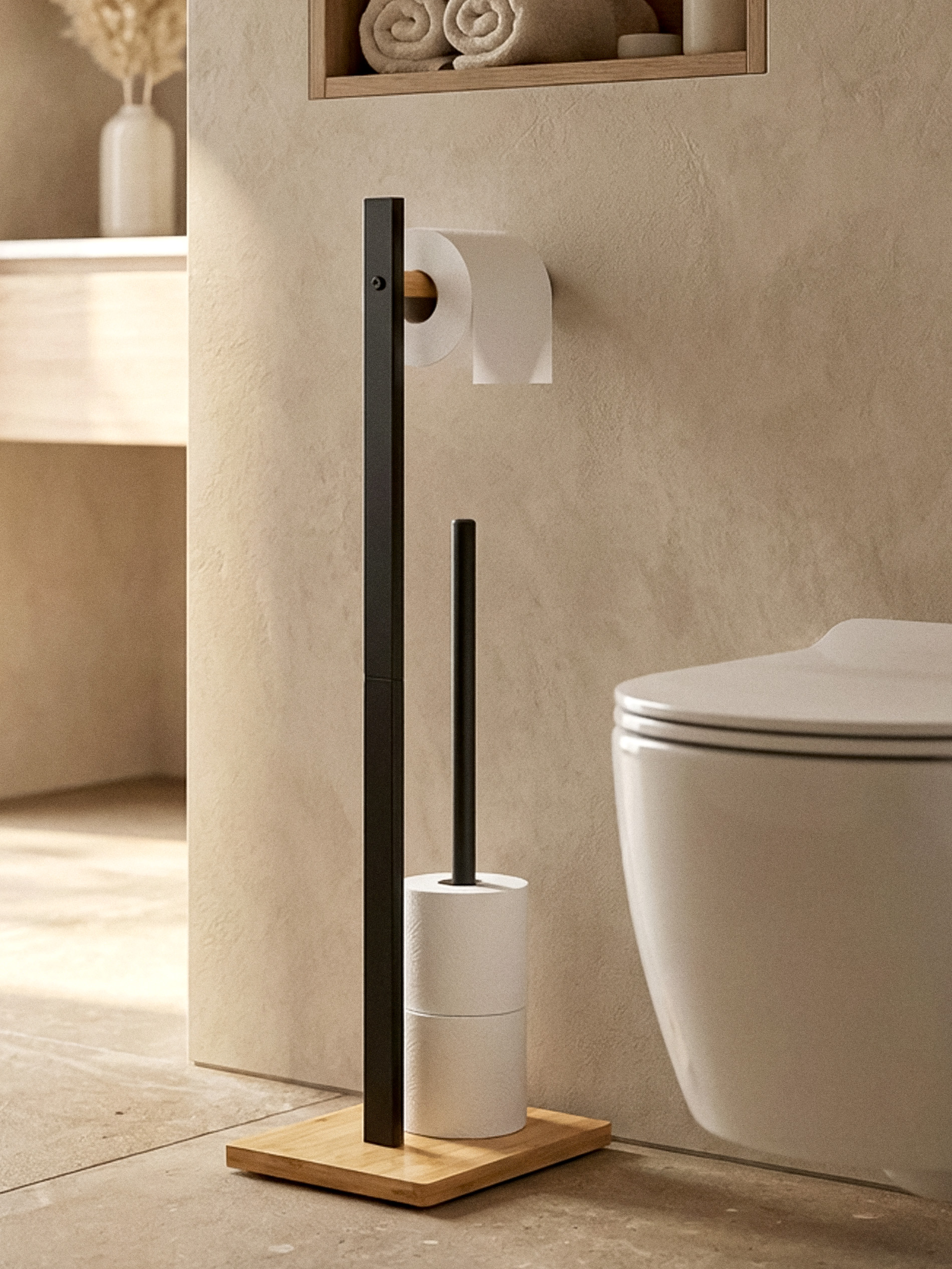 Sinsay - Suport de hârtie igienică - negru - elemente din lemn,finisaj mat