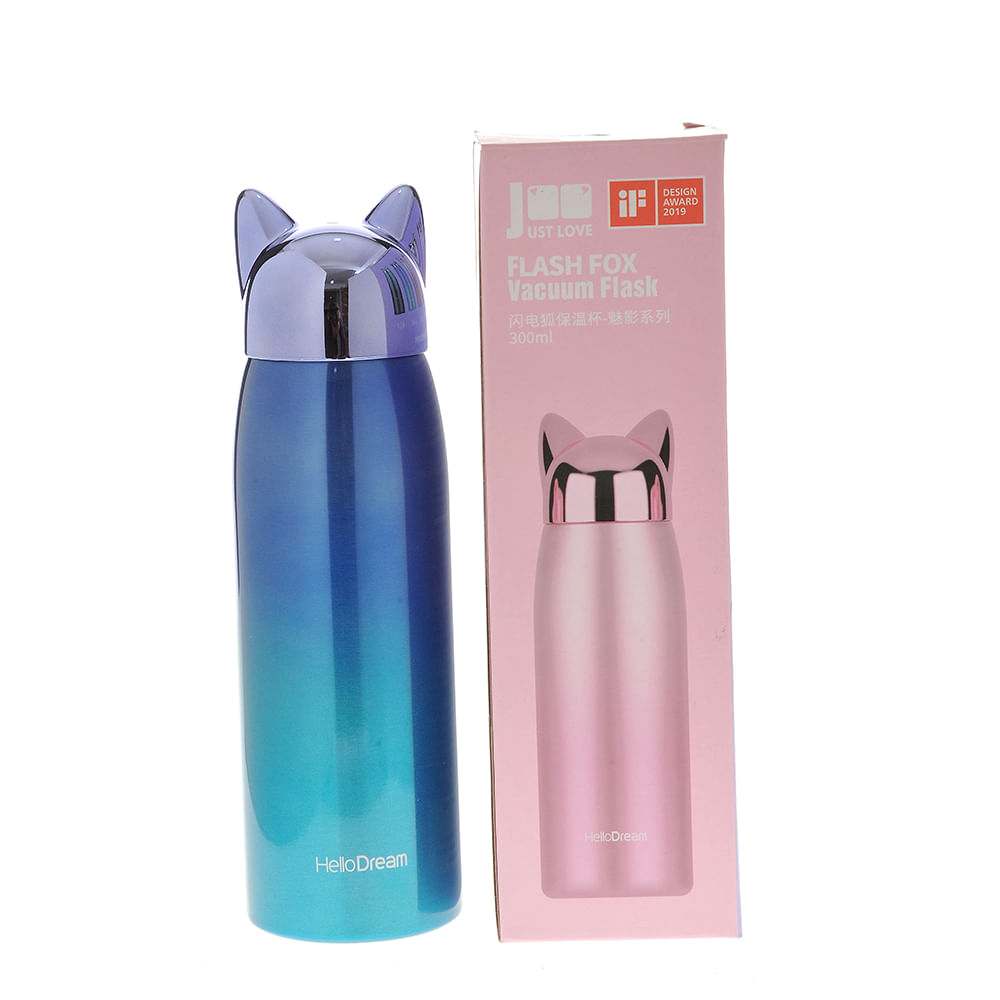Termos albastru cu capac in forma de pisica