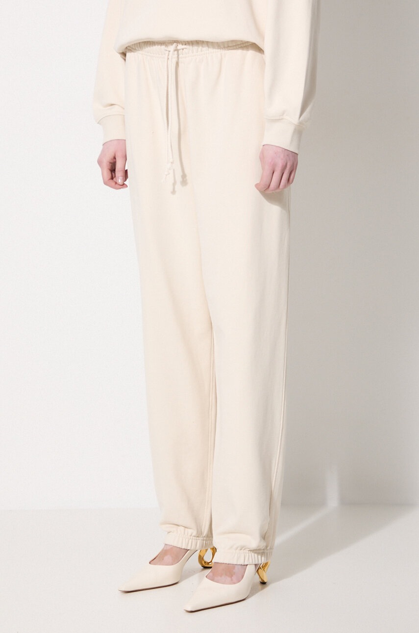 New Balance pantaloni de trening bej din bumbac, talie elastică cu șnur, croială lejeră, buzunare laterale, manșete elastice, mărimea S