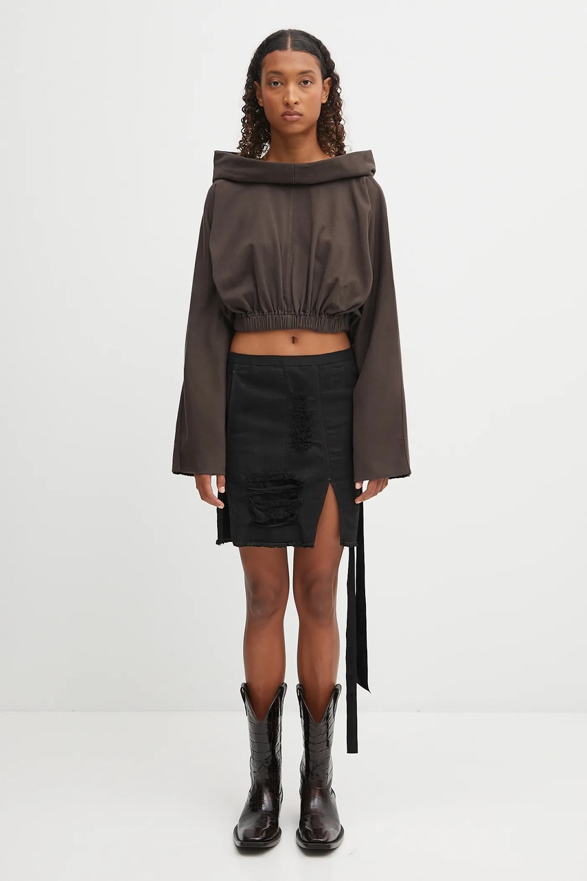 Rick Owens DRKSHDW hanorac de bumbac Cropped Hooded Tunic culoarea bej, cu glugă, uni, DS02E7236.RIG