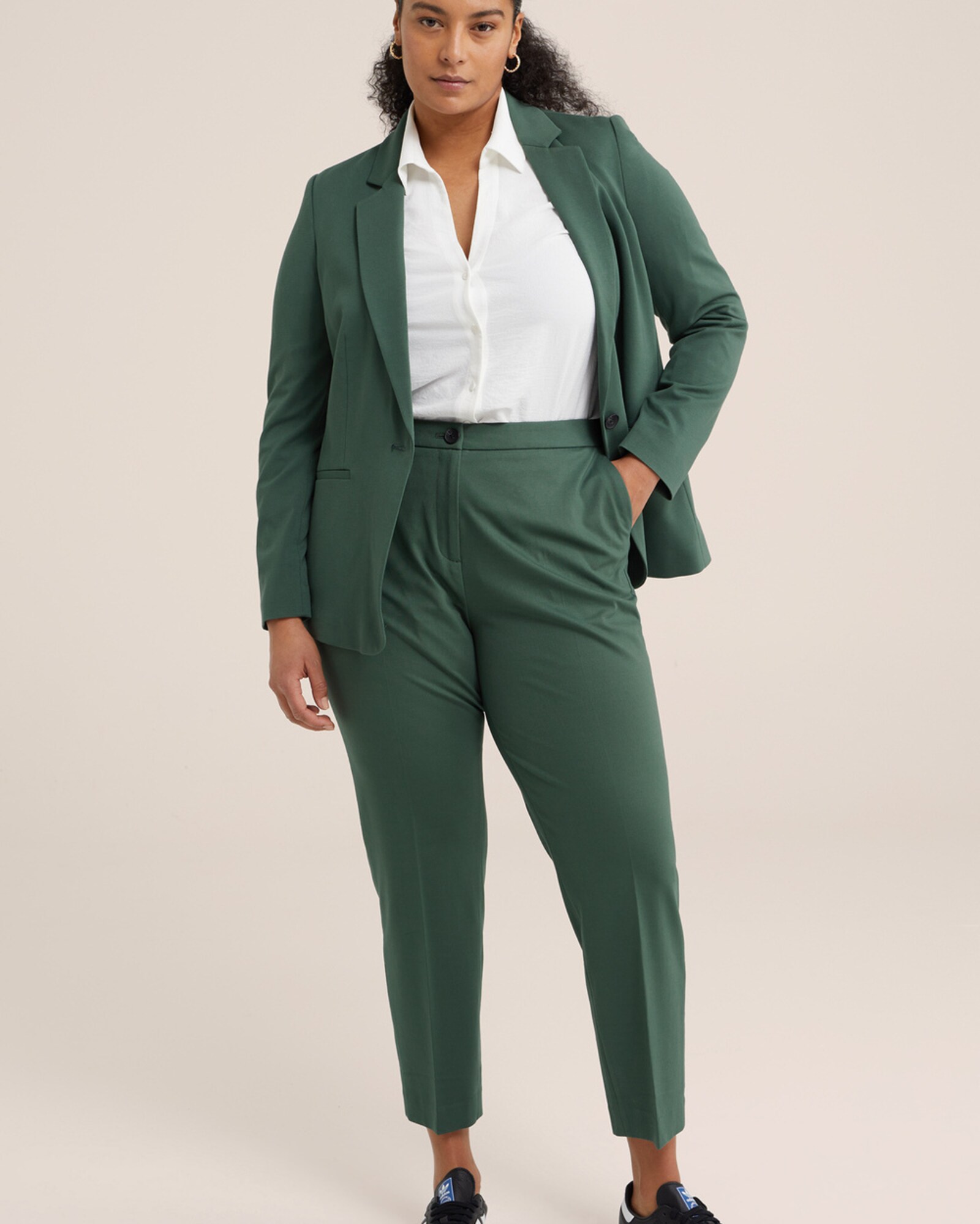 WE Fashion Pantaloni cu dungă verde închis