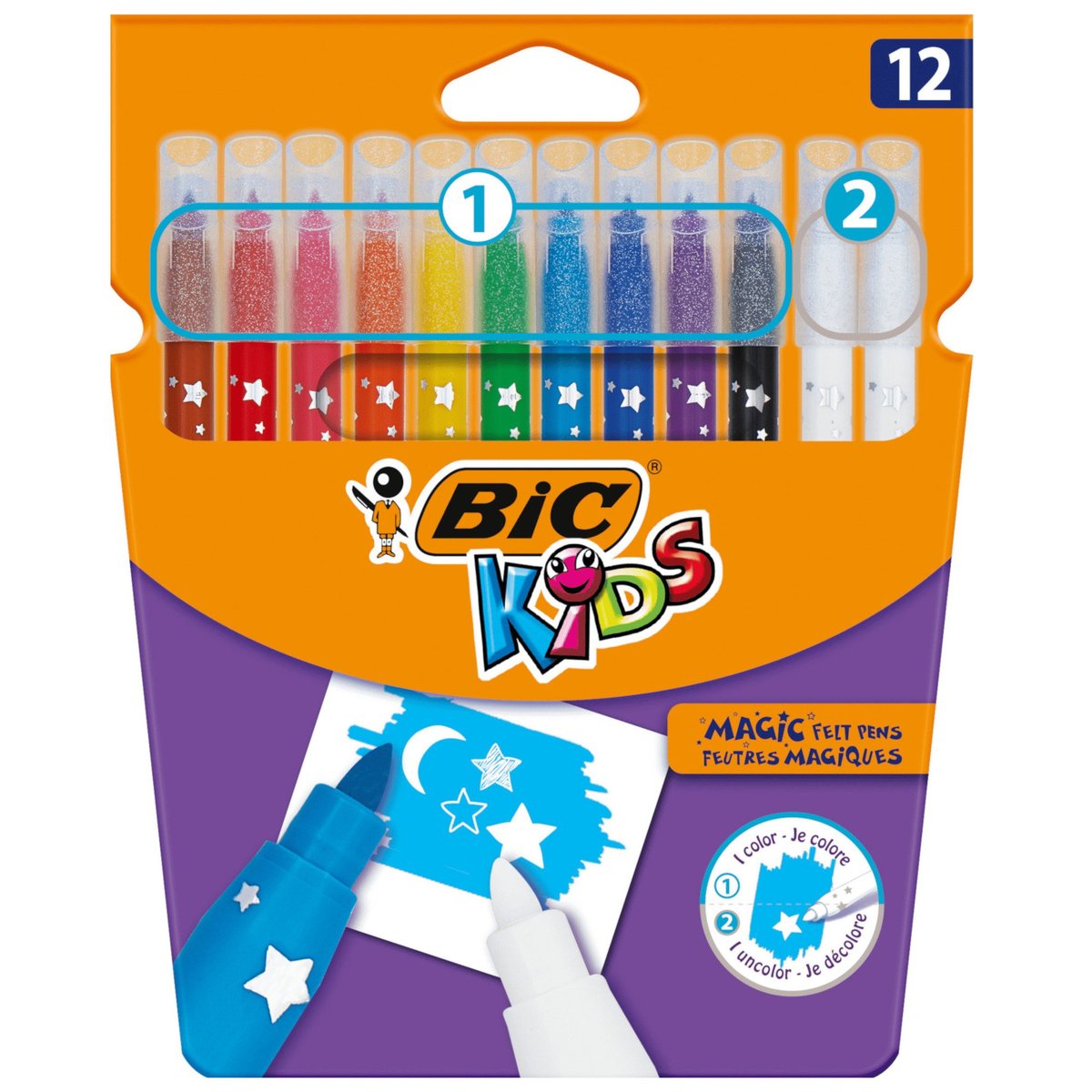 BIC Kids Magic Felt Pens Markere de colorat lavabile, diverse culori