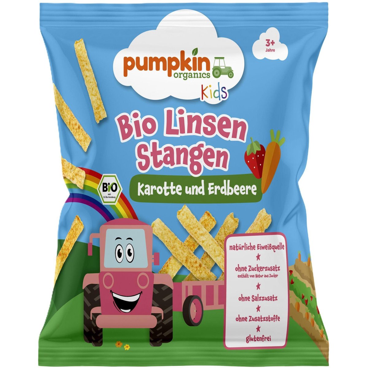 Sticksuri BIO din linte cu morcov* și căpșuni* 30g, 3 ani+*sub formă de pudrăArt. nr. 21115971 Cantitate netă: 30g e (1 porție)Produs ecologic expandat din cereale (50%) și linte cu morcovi și căpșuni.• Sursă naturală de proteine • Fără zahăr adăugat. Conține zaharuri prezente în mod natural • Fără sare adăugată • Fără aditivi • Fără gluten • Produs veganIngrediente**: făină de linte roșie 40,5%, făină de porumb 40,5%, făină integrală de mei 9%, ulei de floarea-soarelui 5%, pudră de morcovi 4%, pudră de căpșuni 1%. **din agricultură ecologică controlată. Fără gluten.Declarație nutrițională: Per 100g: Valoare energetica 1567Kj / 372Kcal, Grasimi 6,9g, din care acizi grasi saturați 0,7 g, Glucide 58g, din care zaharuri 3,5g, Fibre 8,6g, Proteine 15g, sodiu 0,03g, Sare 0,08gIdeal de consumat ca și gustare sau de pus în pachețel la școală. Consumați acest produs numai dacă ambalajul este nedeteriorat.Ca mamă, știu cât de importante sunt gustările potrivite în viața de zi cu zi. Copiii sunt plini de energie, mereu în mișcare și mereu pregătiți pentru noi aventuri, fie că sunt la grădiniță, la școală sau în aer liber. Gustările noastre sunt concepute exact pentru aceste momente: sunt delicioase, practice și făcute cu dragoste. Le poți lua cu tine oriunde, aduc un zâmbet pe micile fețe și fac fiecare moment puțin mai bun. Reprezintă companionul ideal pentru a te bucura de aventurile mari și mici ale vieții. Pentru că cele mai frumoase amintiri sunt adesea create de momentele de zi cu zi. De la familia noastră la a ta! - Jaclyn – fondatoare și mamă A se păstra la loc uscat, ferit de lumină. A se depozita nedesfăcut la max. 25°C.Fabricat în Țările de Jos, sub standarde ecologice (NL-BIO-01). Agricultură UE/Non-UE.