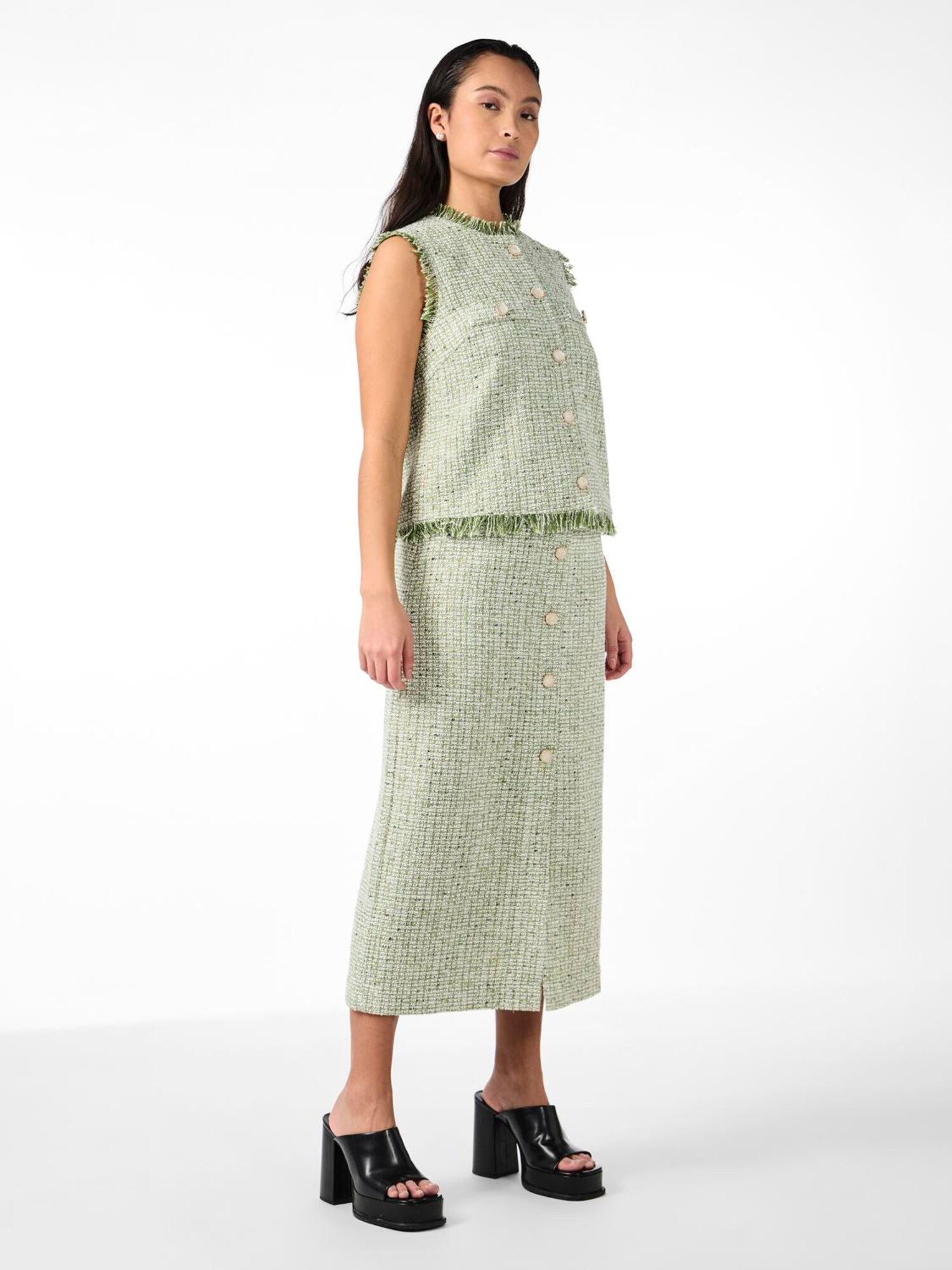 YAS Fustă YASASARA bej deschis / verde măr / verde pastel / negru
