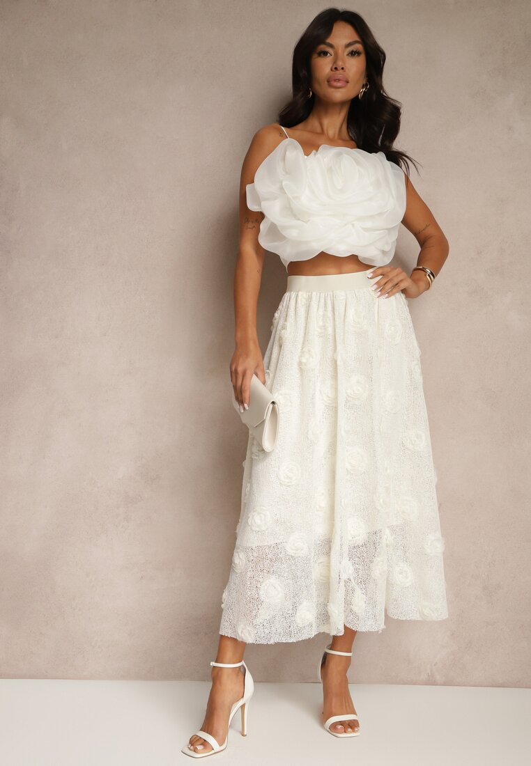 Fustă bej deschis reliefată cu croi cloș cu elastic în talie Folunetta