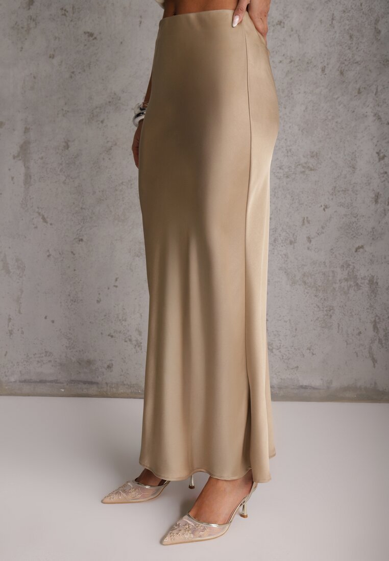 Fustă bej din satin maxi cu talie înaltă Formia