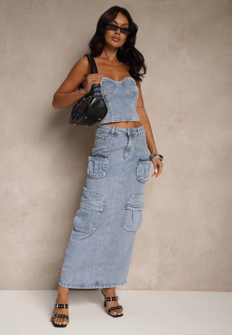Fustă creion albastru deschis maxi din bumbac cu buzunare Metrima
