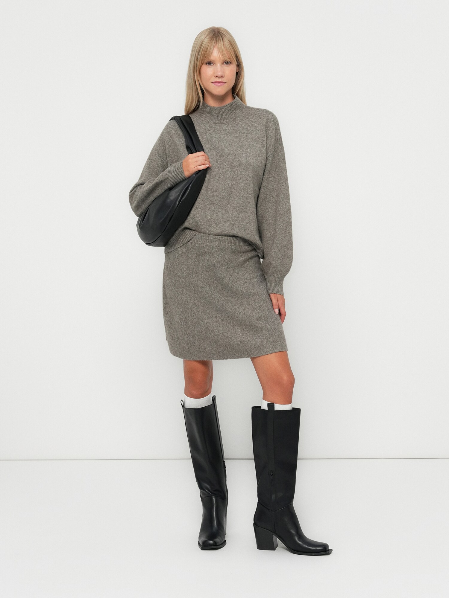 Design: Tiv/ betelie elastică, Tiv drept; Material: Material reciclat; Imprimeu: Melanj; Forma fustei: În formă de A; Detalii: Fully fashioned, Fabricat ecologic; Lungimea: Până la genunchi; Croi: Croi normal