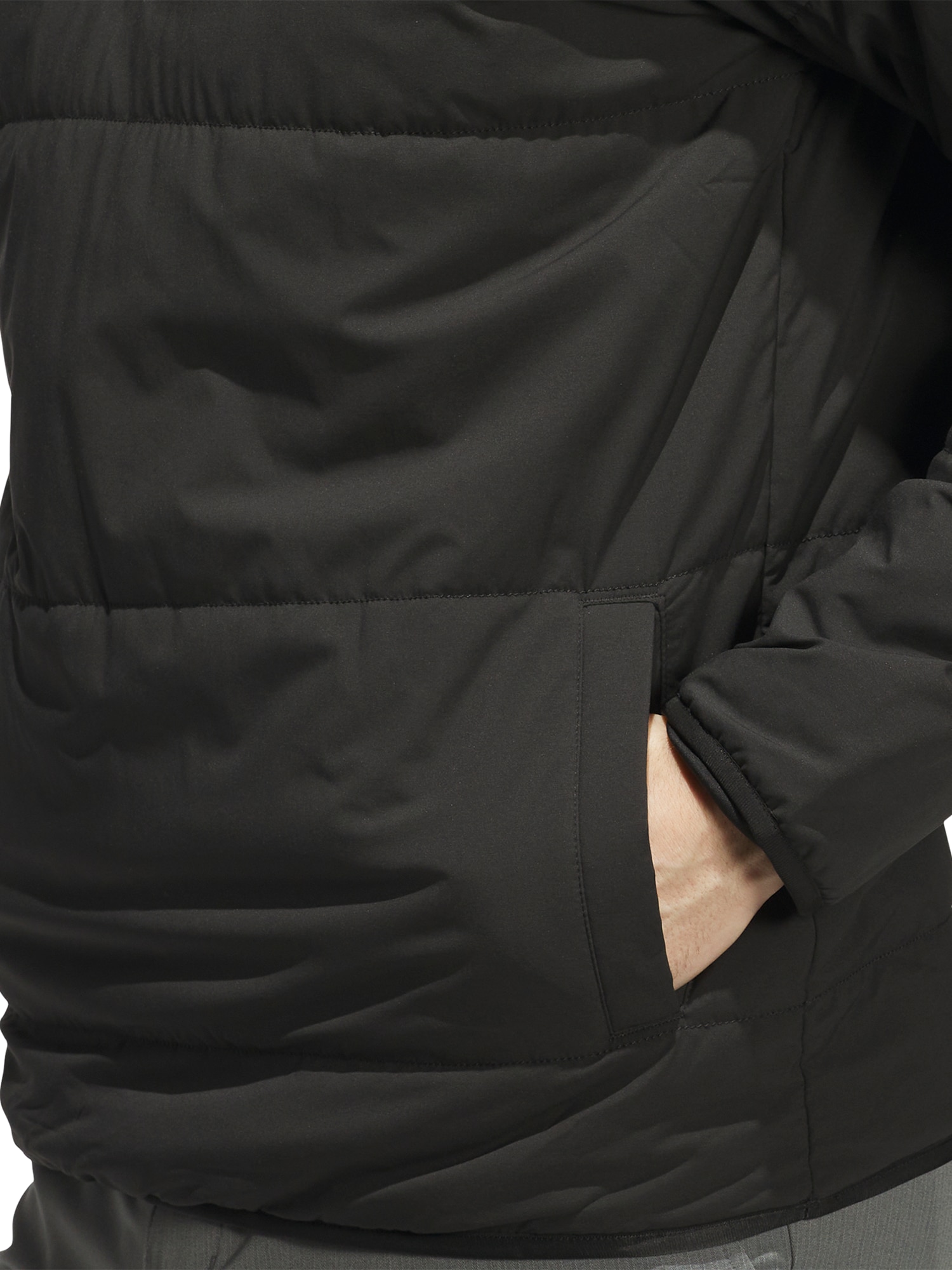 Design: Cu tiv, Guler tunică, Buzunare laterale deschise, Semifermoar; Tip de închidere: Fermoar; Căptușeală: Căptușit parțial; Imprimeu: Monocrom; Detalii: Matlasat, Cusături ton în ton, Material neted, Imprimeu cu logo; Detalii: Se închide până sus, Fermoar cu bandă de protecție împotriva vântului; Croi: Croi normal